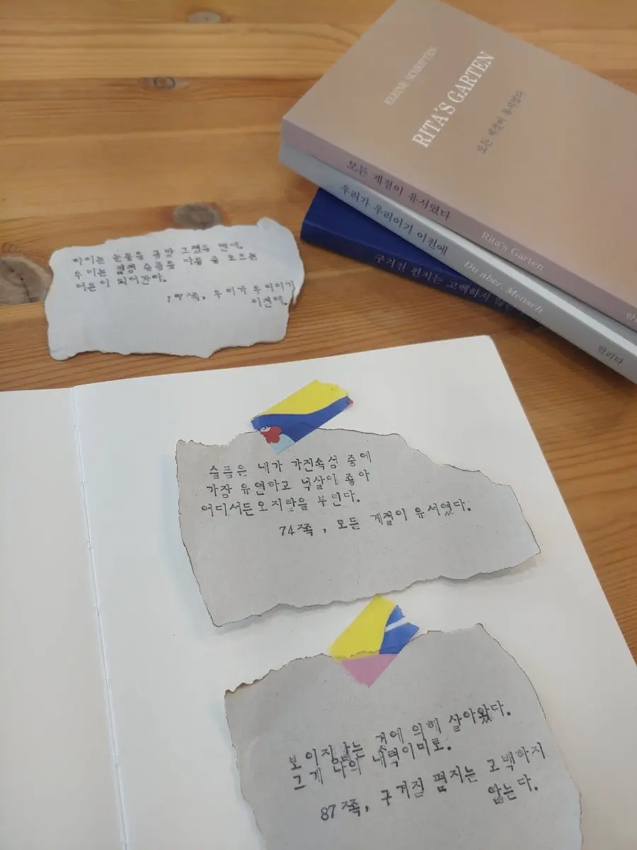 모서리를 후후 불어 종이에 꼭꼭 붙여 타자화