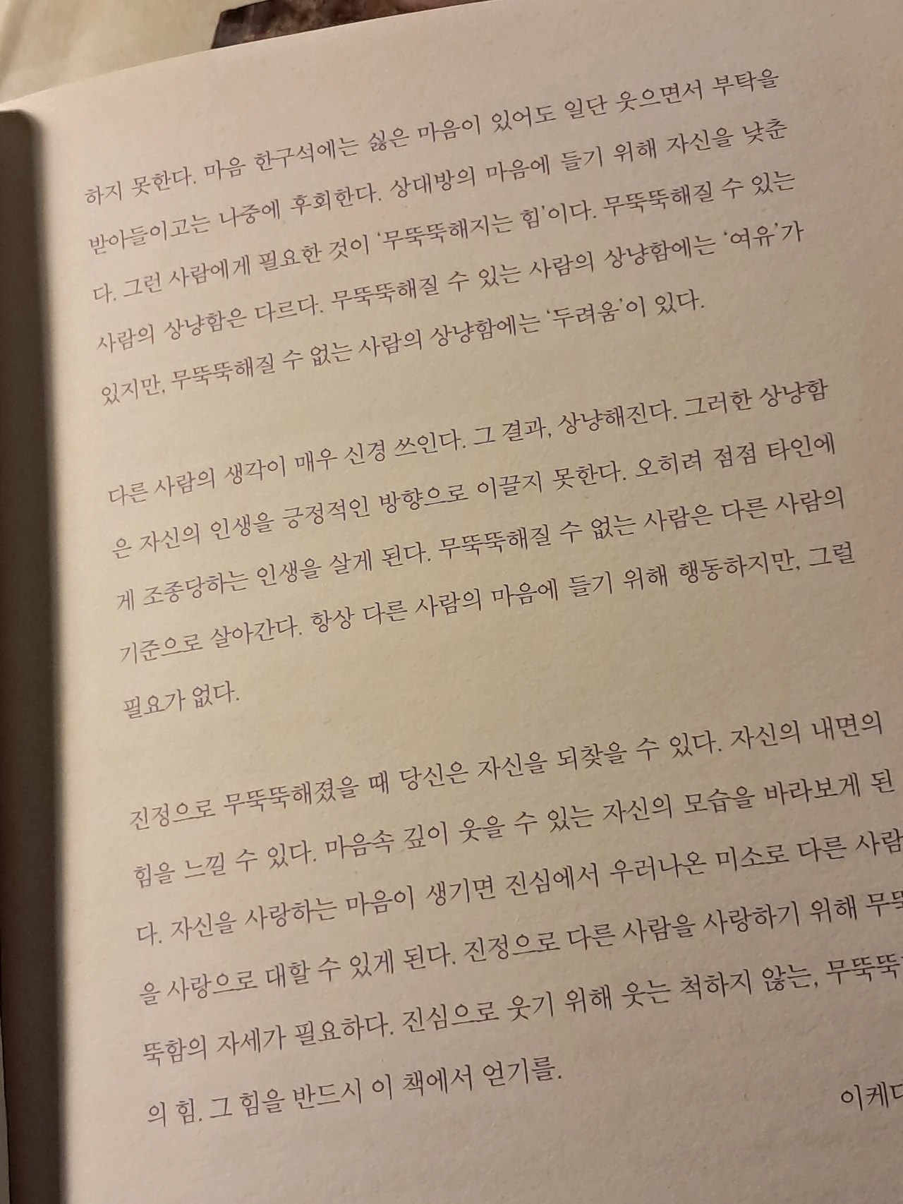 글을 쓰는 근력은 이제 필요 없다고 훈련을 멈춘다면 지적 활동에서 가장 중요한 '계속 생각하는'작업을 방임하는 것이나 다름없다. 여기서 중요한 것은 지적 강인함이 심리적 안정감으로도 이어진다는 것이다. 머리의 정리가 곧 마음의 정리다. 마음을 정리하는 과정에서 우리는 '이 문제는 내가 해결할 수 있을까?'하고 안고 있는 문제를 고민한다. 그리고 마침내 '아무리 생각해도 내가 해결할 수 없는 건 어쩔 수 없다. 지금 할 수 있는 것을 하자'라고 깨닫는다. 그 경지에 이르면 마음이 안정된다.