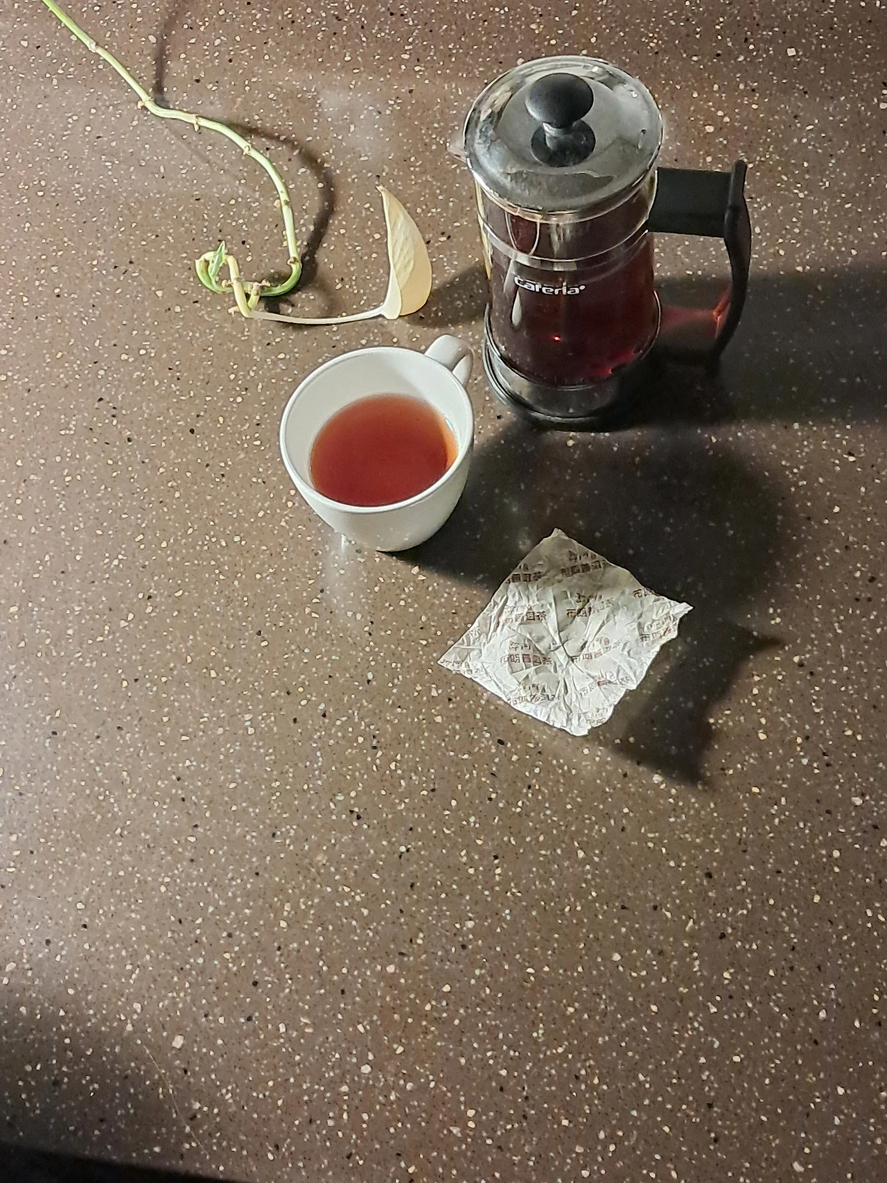 유통기한이 10년 보이차, 아침에 공복 레몬수를 마시는 대신 잠시, 차를 다시 마시는데. 책방 때의 차보다 더 깊어진 맛을 낸다.