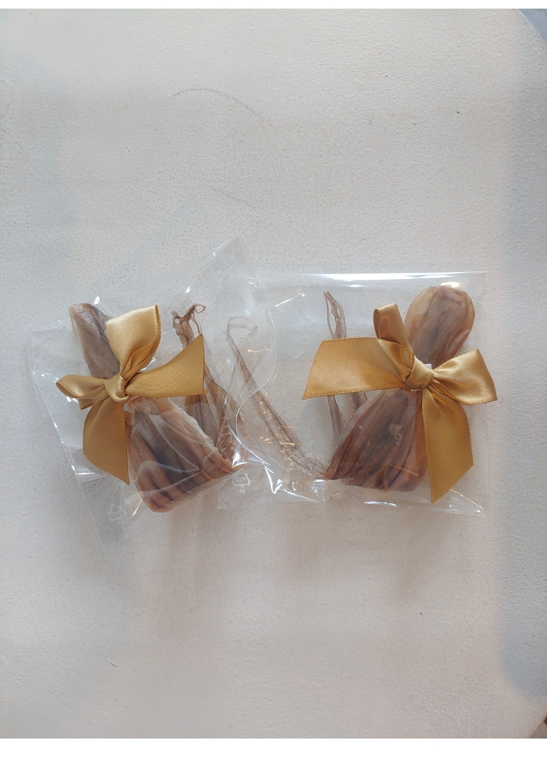 서해의 주꾸미가 건어물이 되어 리본을 묶을 때