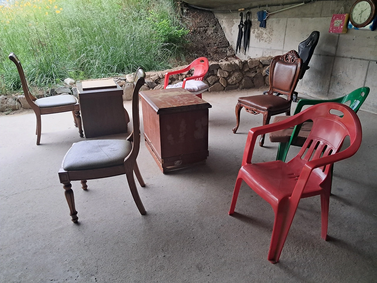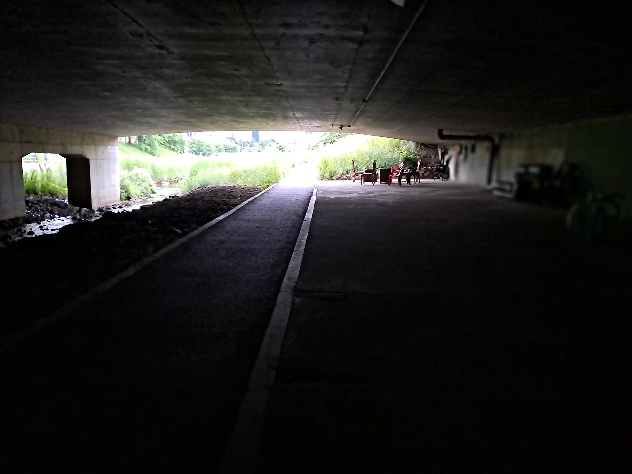 지나는 다리마다 의자가 어디는 단 한 개, 어느 곳은 앞만 바라보며 열 개 정도, 거기는 바둑판 탁자까지 구비해 삼삼오오 모인 의자 옆에 컴퓨터 의자가 따로따로, 어디는 다리 하나 누가 고의로 뺀 듯 페이크 의자로 다리가 세 개다. 조심하시라. 누군가는 그런 행동을 한다.