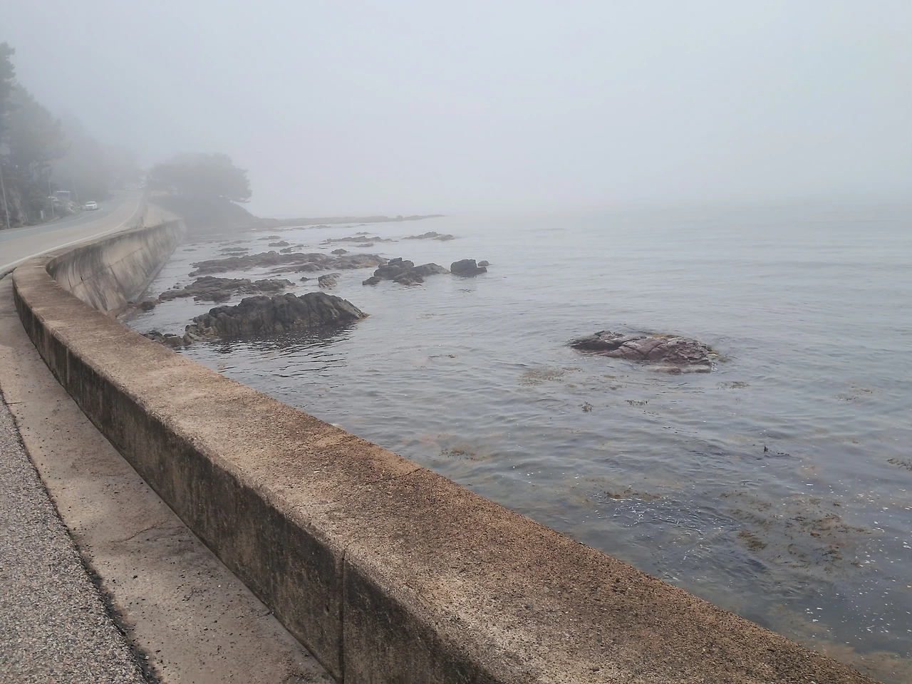 해무가 바다 이 끝과 저 끝을 잡고 안 보여준다.