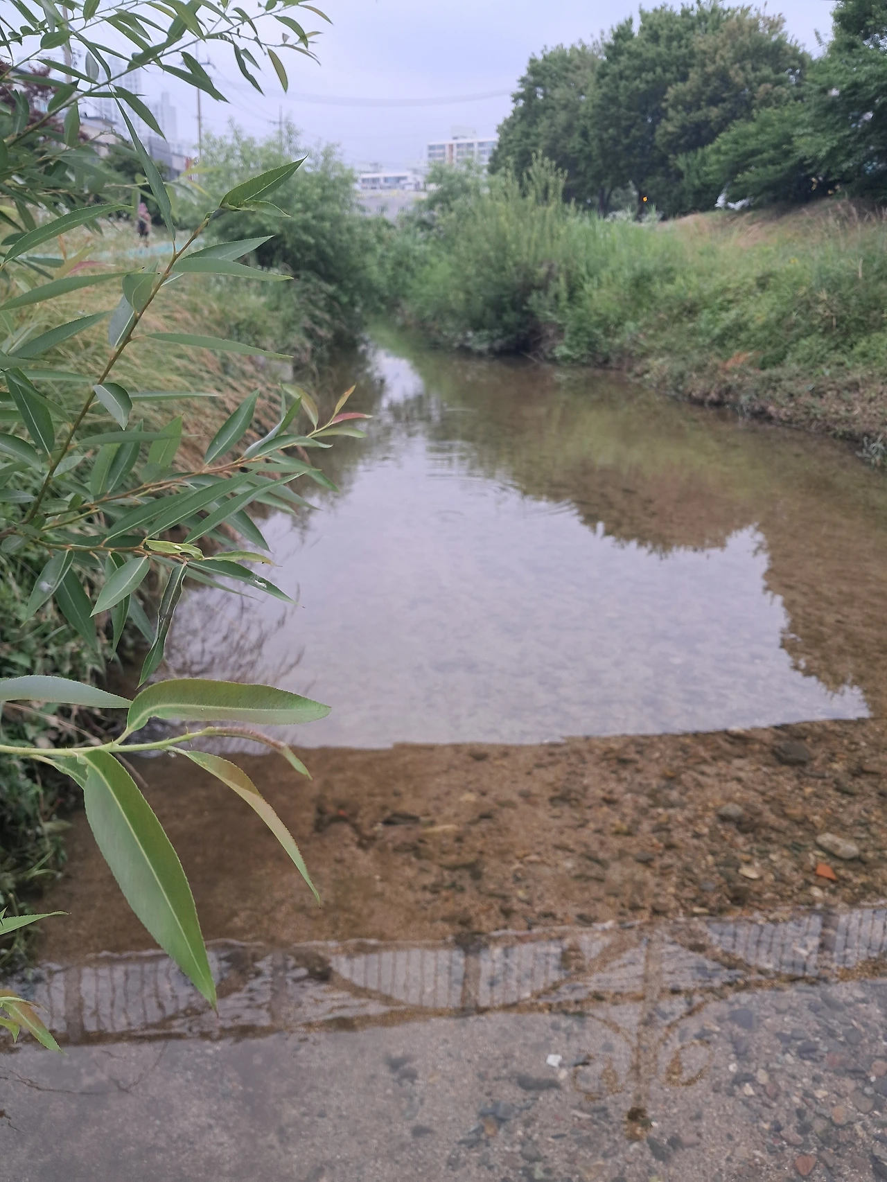 아침, 수변관찰로를 걸으며 어제의 흙탕물이 많이도 맑아짐을 엿보다