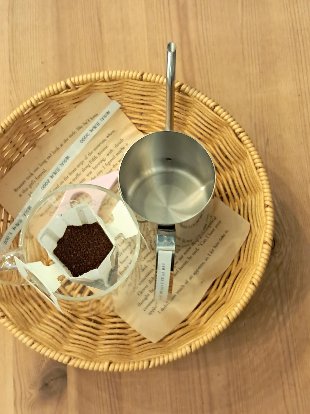 _책, 필사 종합세트 안에 책, 유리만년필, 클립보드 종이, 롤온향수, 시향지 등 들어 있습니다