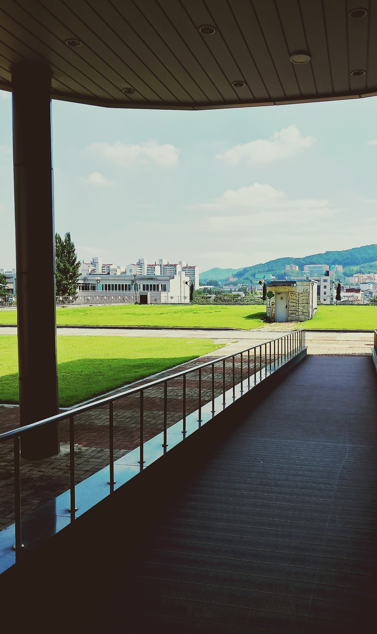 더워서, 걷지는 못하지만 다른 계절 조금 기온이 하강하면 걸을 데가 옆 뒤로 이어지는 진천군립도서관이다.