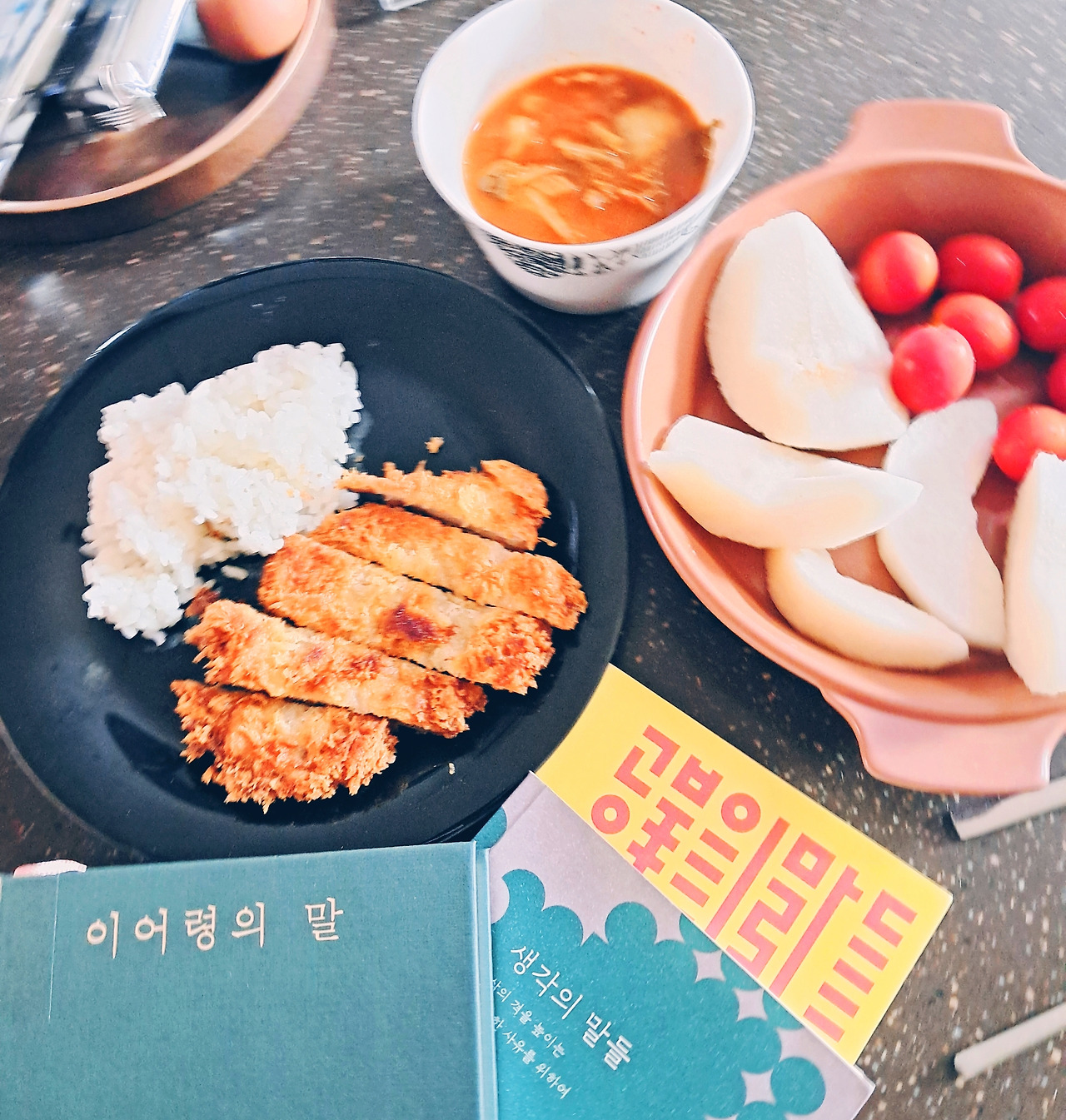 날려버리듯 안경과 모자를 떼내고 샤워하고 말들 책 교차독서로 공부의 말들, 생각의 말들, 이어령의 말을 보다 앵천식당이 떠오르는 김칫국과 집 돈가스와 오늘도주와의 발사믹 샐러드로 나트륨 중화하며 그 식당을 자꾸 말한다.