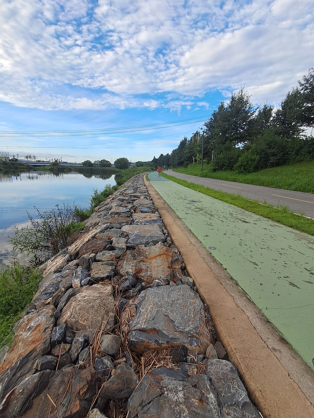 아침, 단 4km를 걷는다. 아침 6시와 7시 사이를 걷는데 어제보다 더위가 한층 복사열의 지열인지 같은 시간대 기온이 더 높아 사우나하듯이 땀이 제대로 나다.
