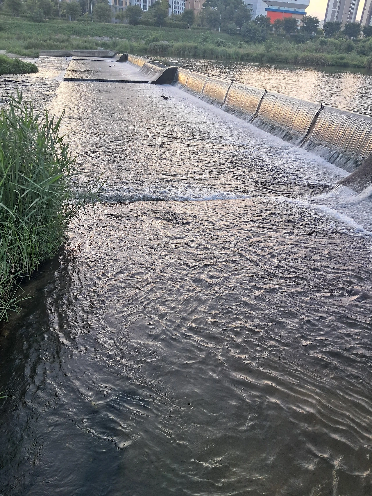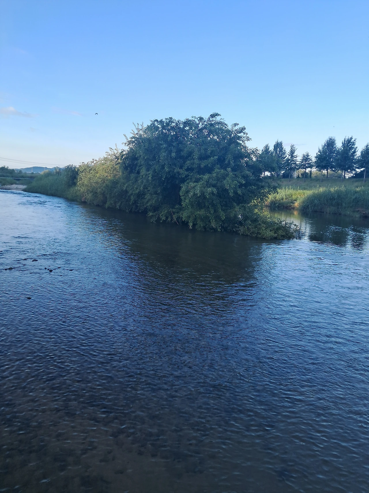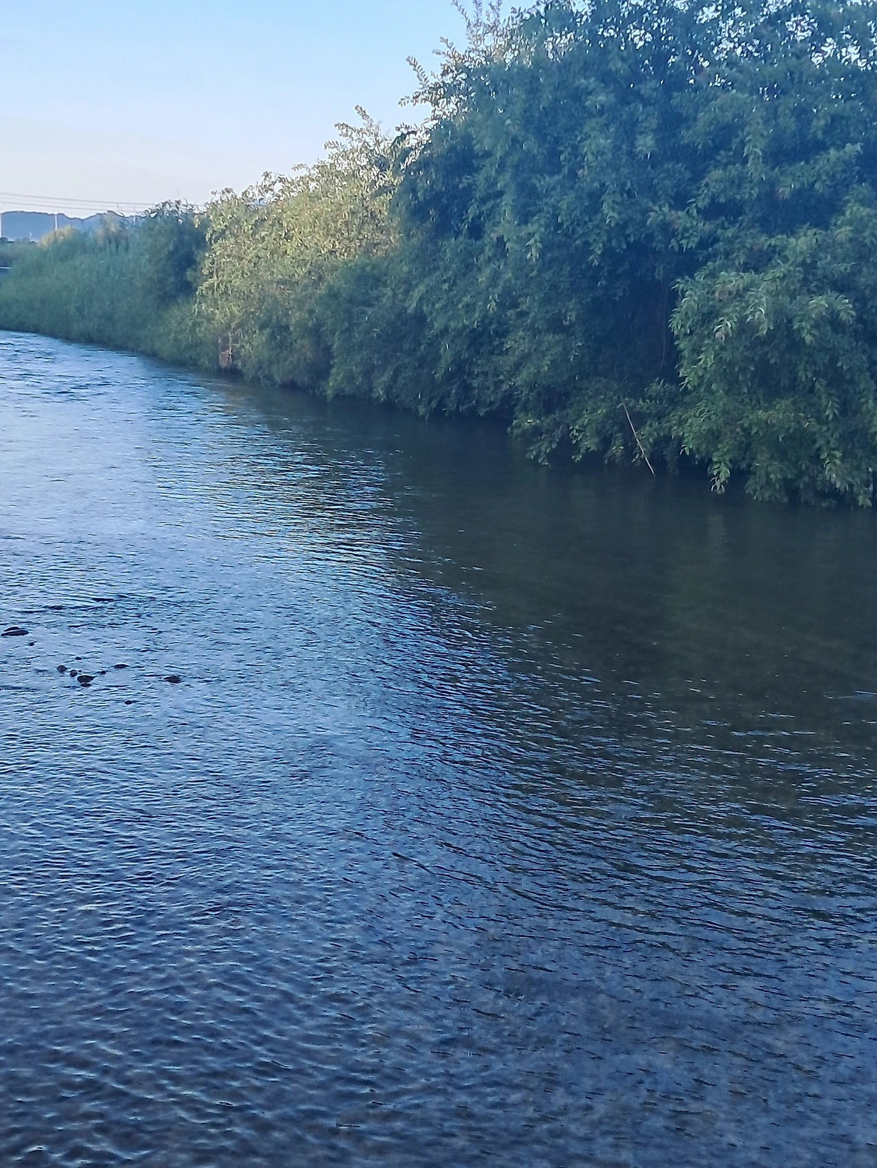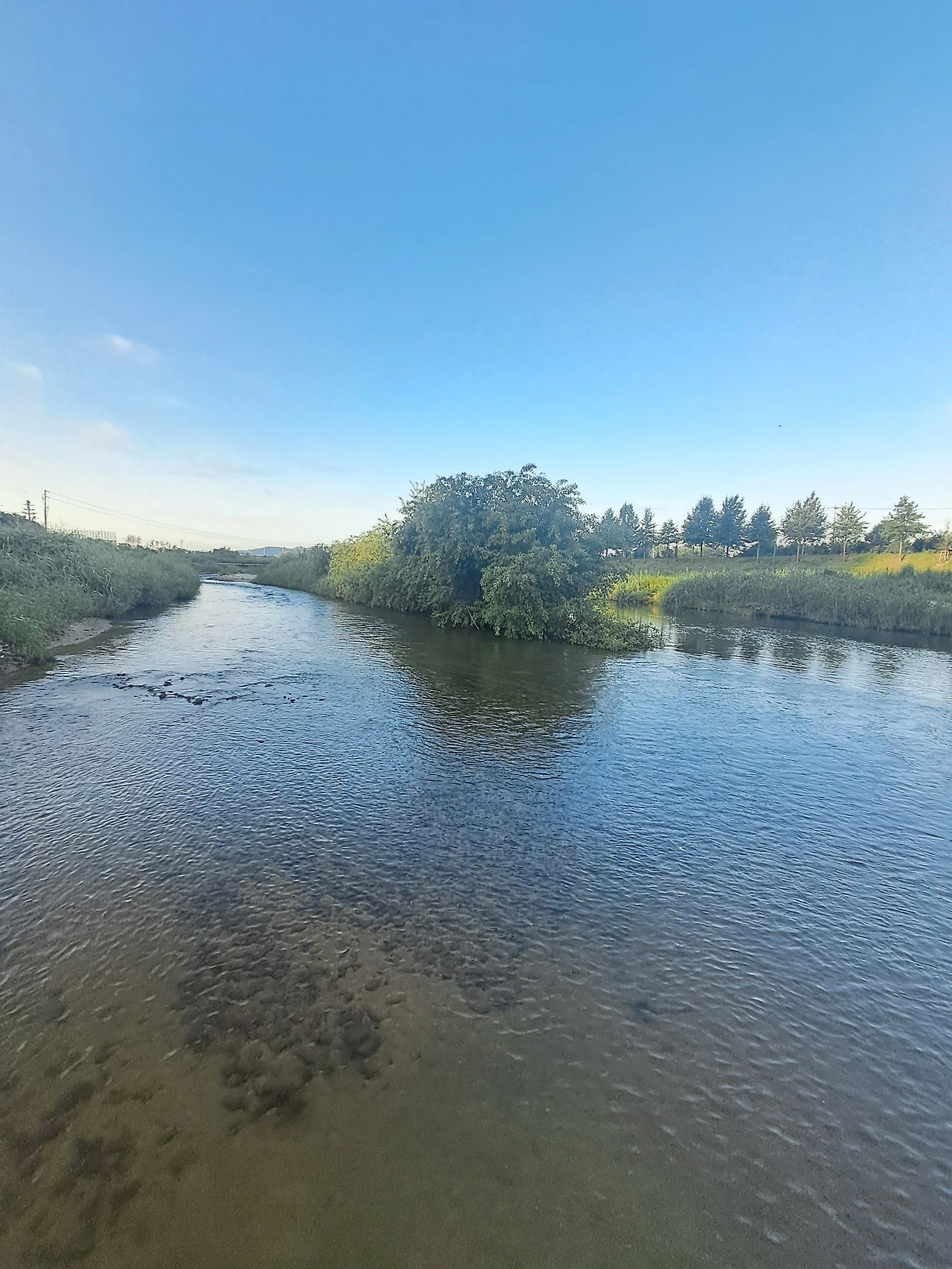아침 빛이 있는 구간, 잠시 시원한 물 흐름의 반대방향 바람을 맞는다.