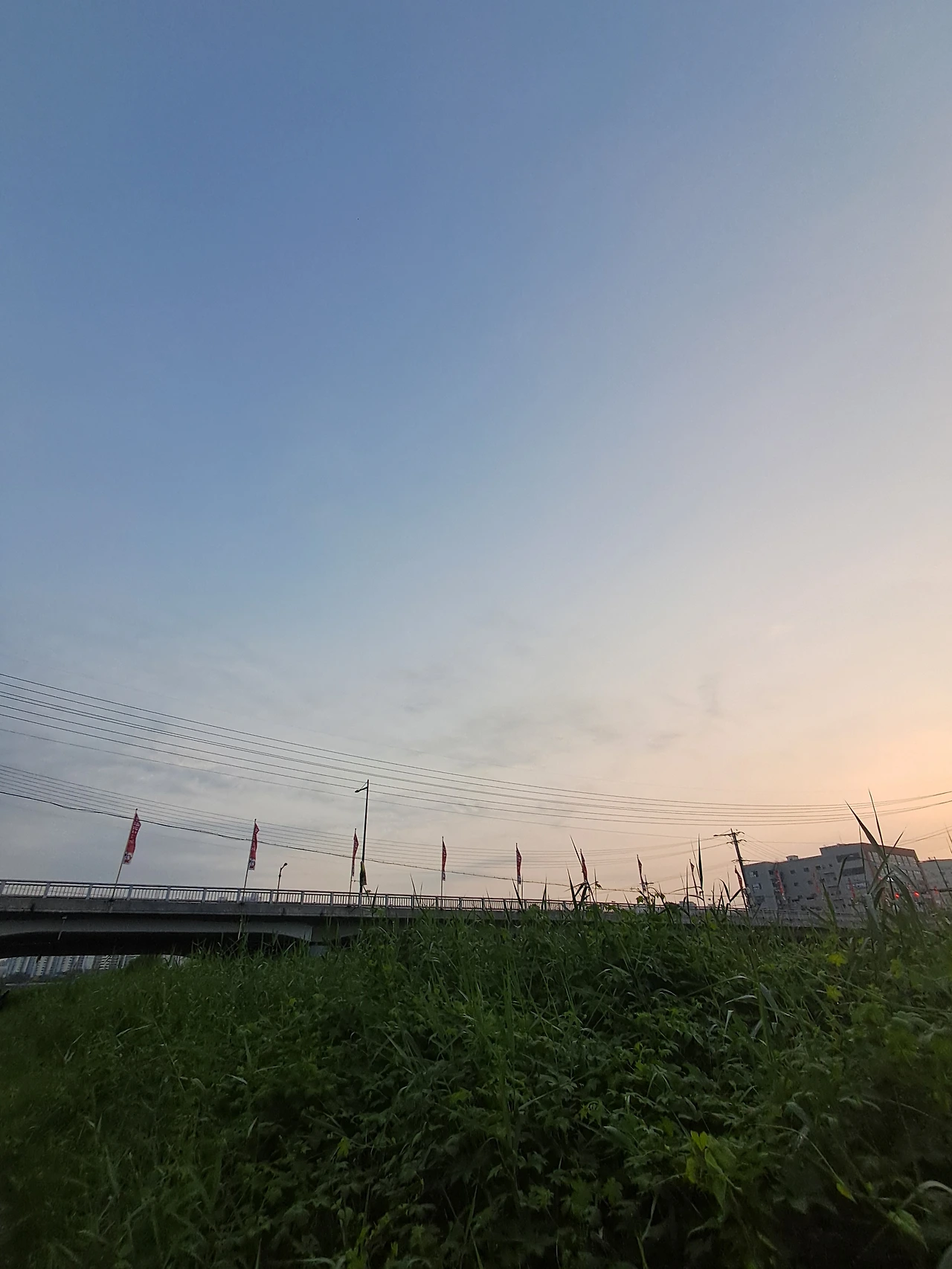 5시와 6시 사이를 걸어, 풀숲 산책 고양이보다 몇 걸음 앞서 공터에 도착하고 철봉에 3초 매달리고 걷기 시작하다.