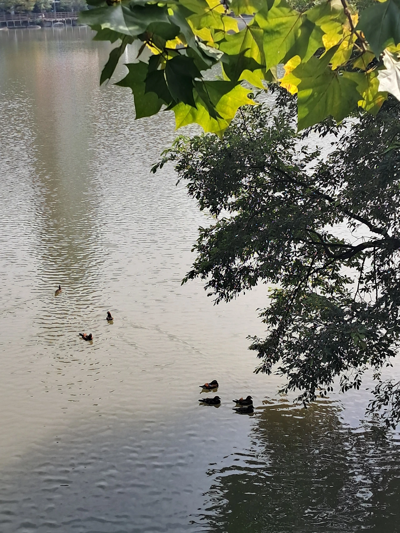 오리배는 한 척 뜨고 청둥오리들은 터를 잡고 사는 오리와는 다르게 많은 수로 무리를 지어 보인다.
