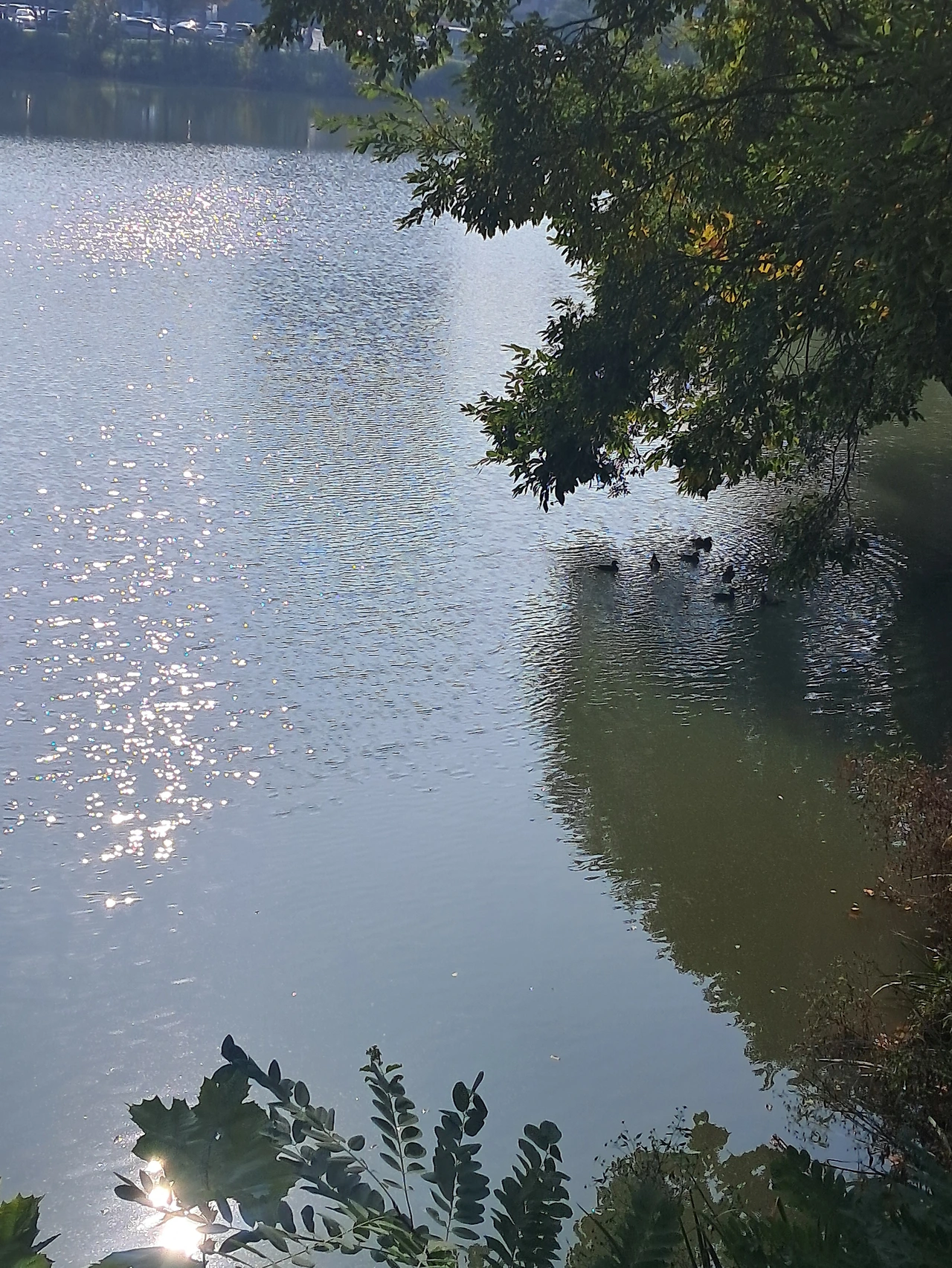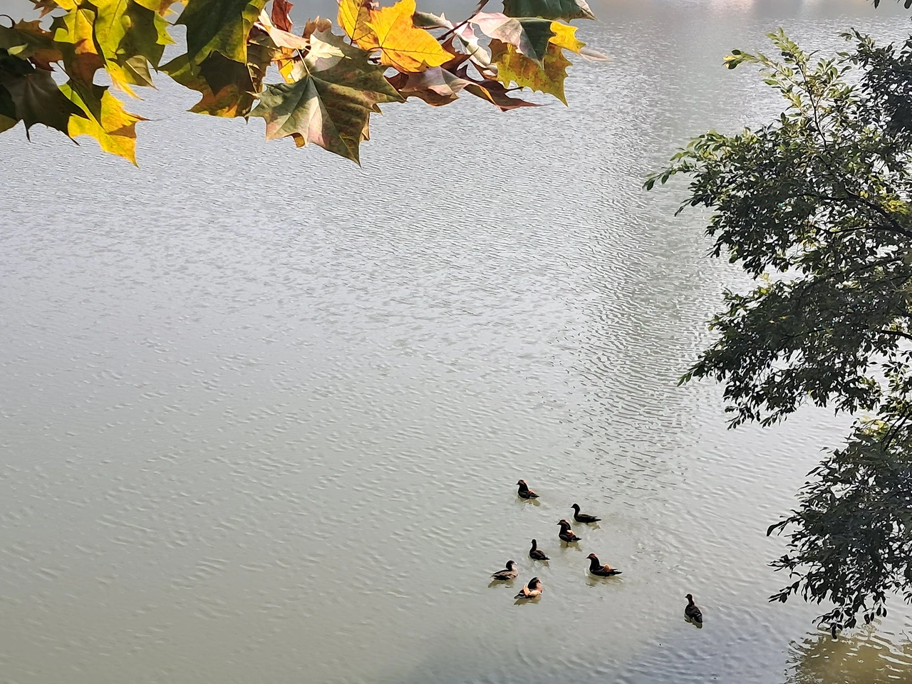 나무와 오리와 저수지 물결과 햇빛과 둘레길을 도는 사람들 자체로 가득 차는 장면인 것을.