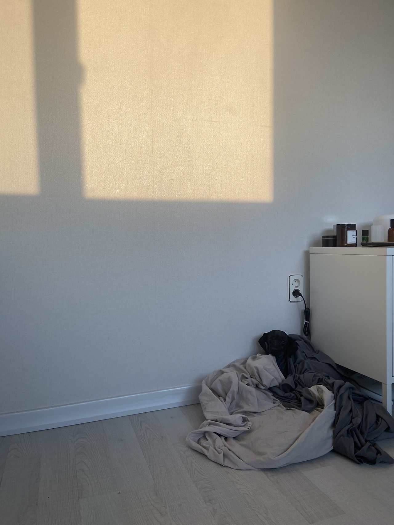나의 공간에 다른 생명체를 들여놓는 순간은 기대했던 것만큼 극적이지 않았다. 기존의 환경과 하루는 아직 조화롭지 못했다. 하루를 바닥에 내려놓자마자 하루는 집안 이곳저곳을 킁킁대며 돌아다녔다. 하루의 발톱과 거실 바닥이 부딪히며 내는 소리가 평화로운 나의 공간을 뒤흔들었다. 불안이 내 마음에 쿵하고 내려앉았다. 바닥에 주저앉으려는 찰나 요란한 소리가 멈췄다. 하루가 거실 한가운데 자세를 잡고 똥을 싸고 있었다. 참 큼지막했다. 나는 그 큼지막한 것을 보자마자 울음을 터뜨렸다.