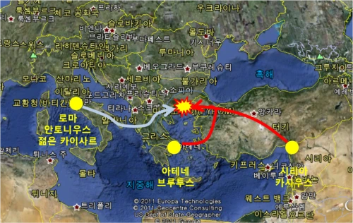 이즈음 동방에서는 또 다른 암살자 대표 격인 마르쿠스 브루투스와 카시우스가 공화국 재건을 위해 분주했다.