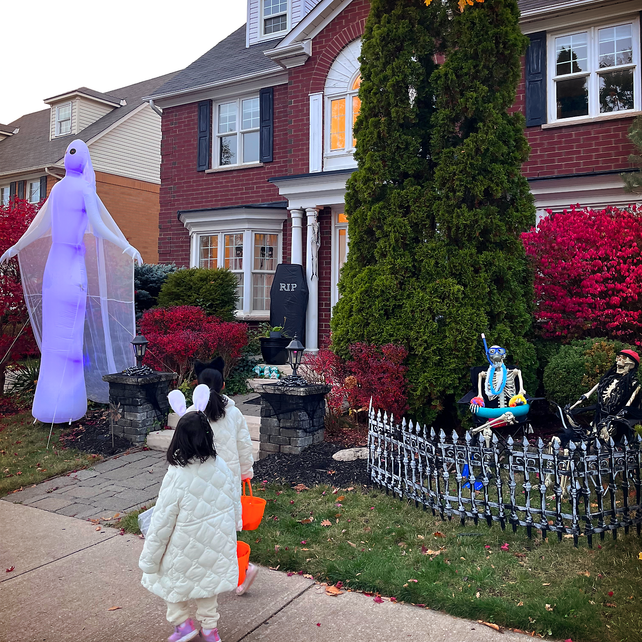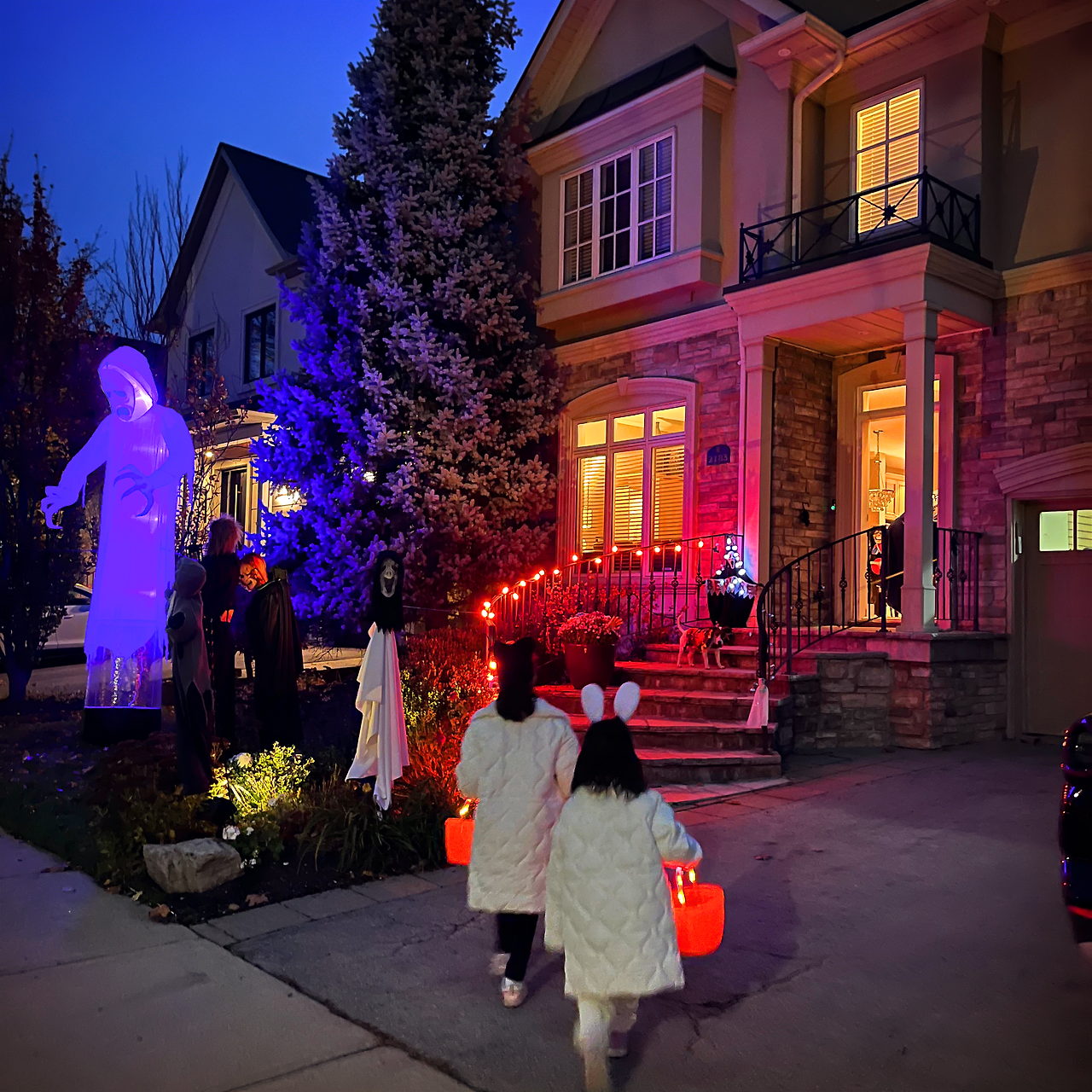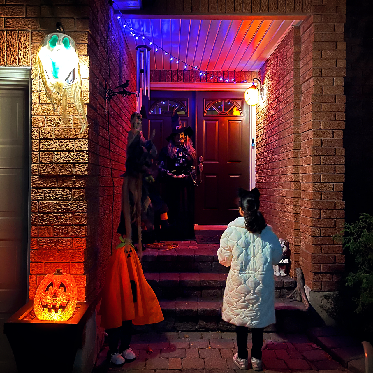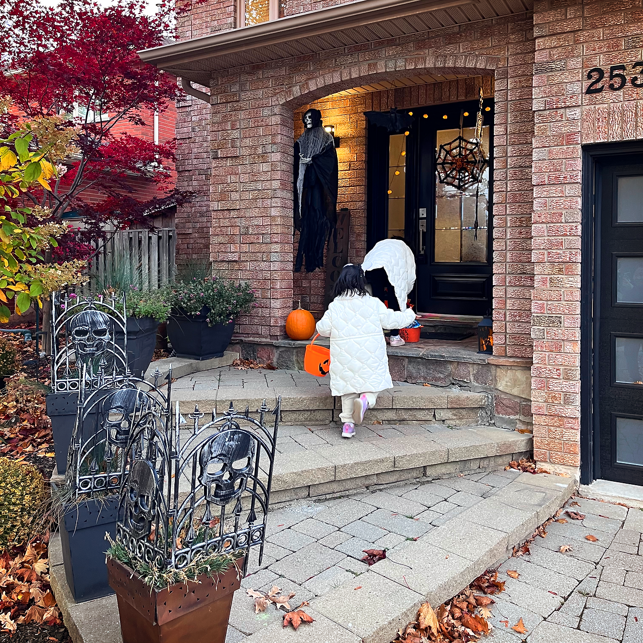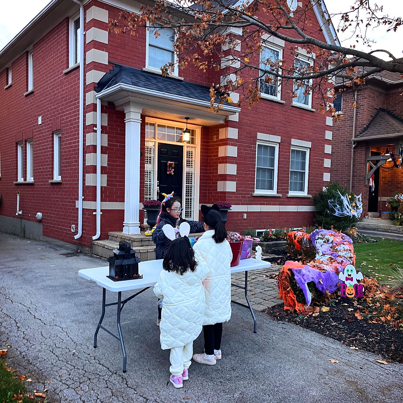 개중에는 아이들 기준으로 너무 무섭게 꾸며놔서 문 앞까지 함께해 준 집도 있었지만, 거의 대부분의 집들은 아이들 둘이 손잡고 들어가 ‘trick or treat‘을 외쳤고, 어느 순간 동네 아이들이 삼삼오오 짝지어서 이 집 저 집을 돌아다니니 마치 온 동네 축제가 된 기분이었다.