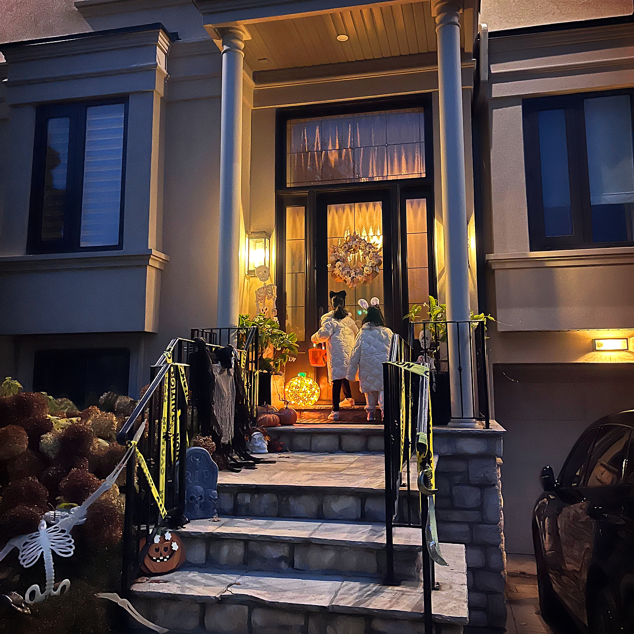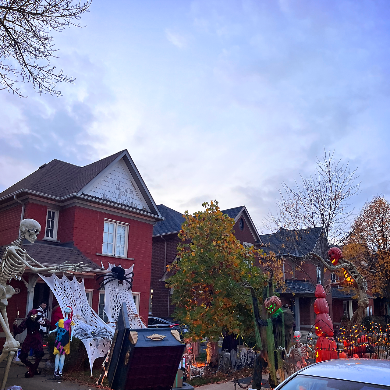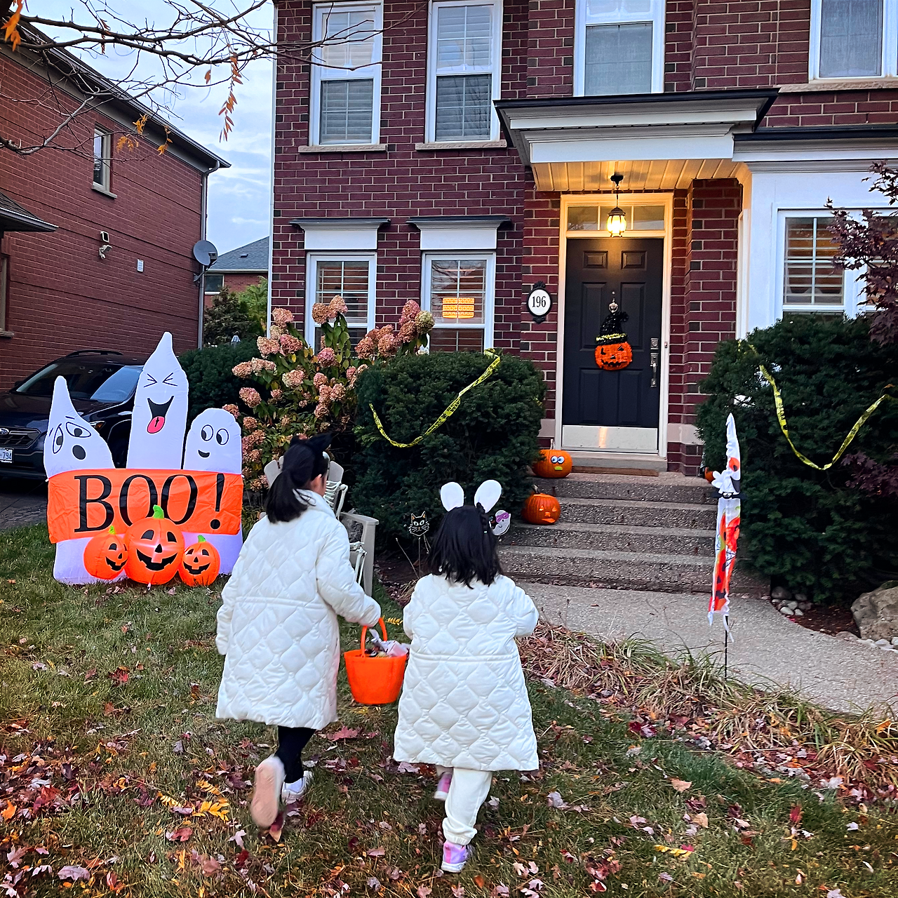 아이들이 집에서 코스튬으로 갈아입을 동안 차를 타고 동네 한 바퀴를 쓱 돌며 할로윈처럼 꾸민 집들이 모인 장소를 찾아둔 뒤, 코스튬으로 갈아입은 아이들을 데리고 이동했다.