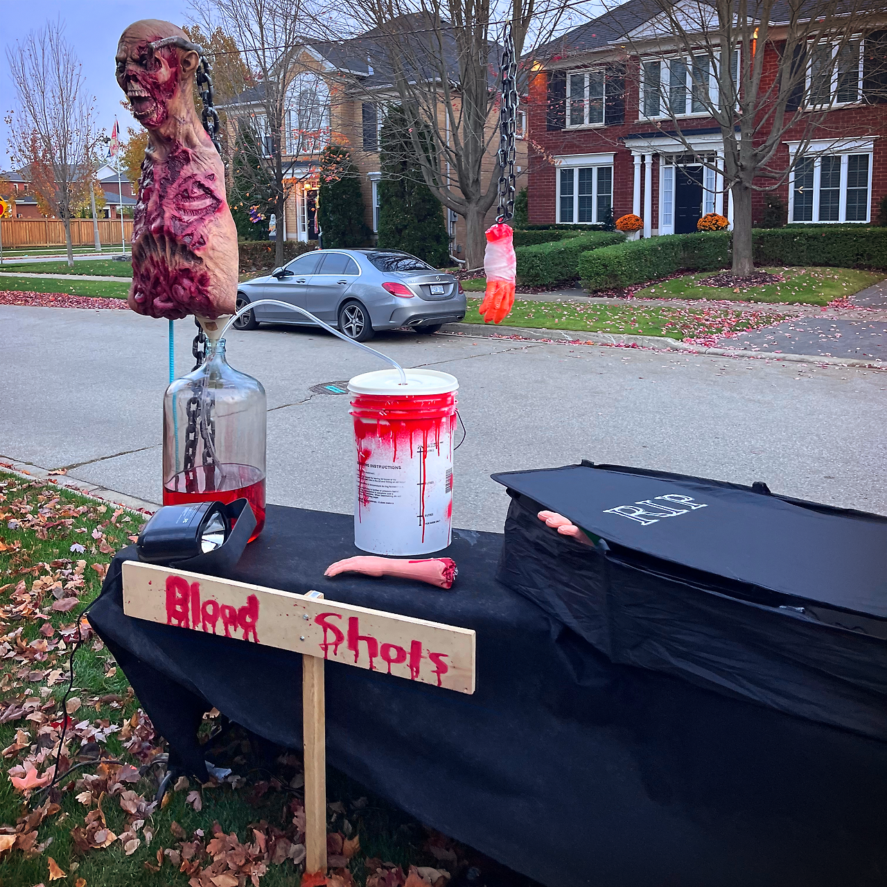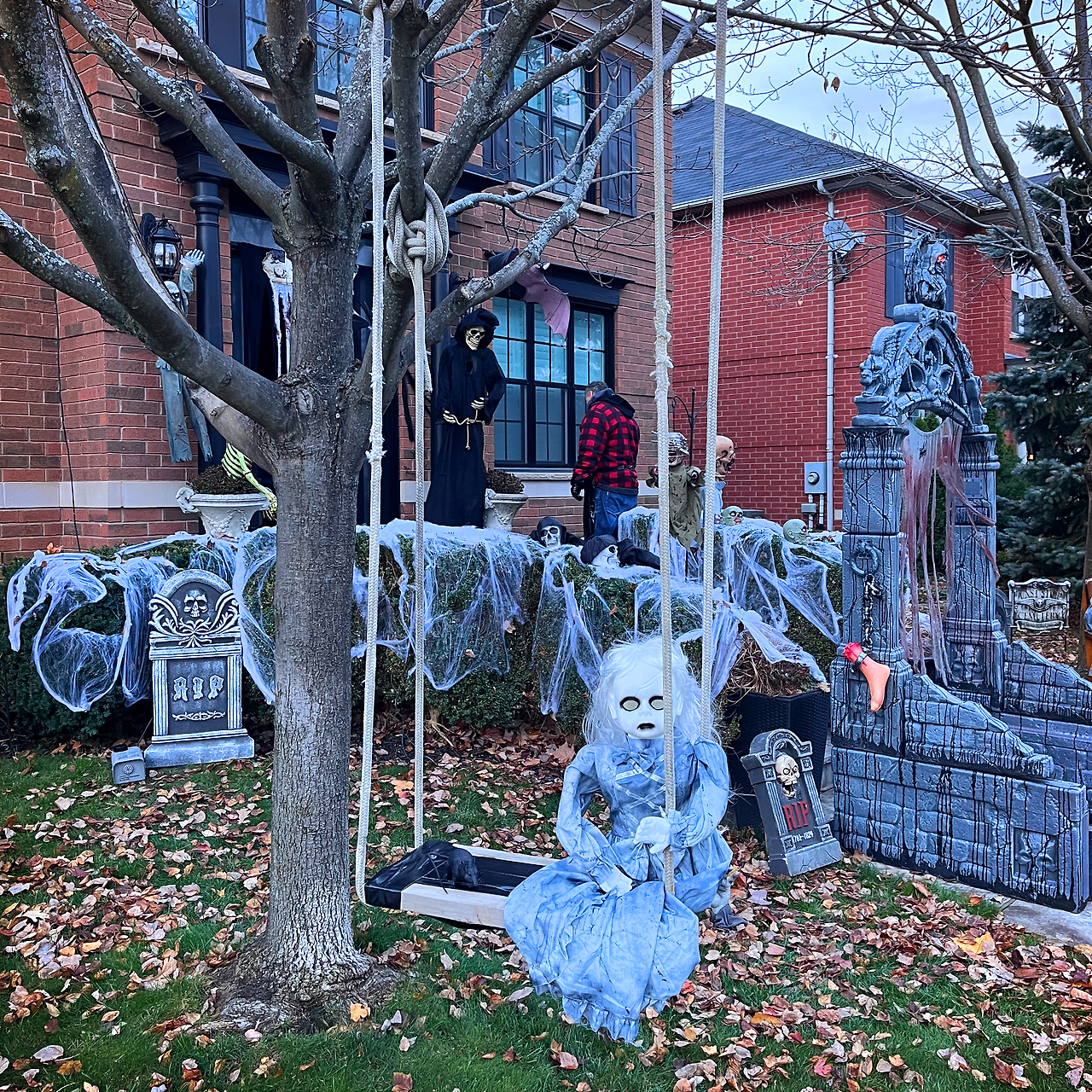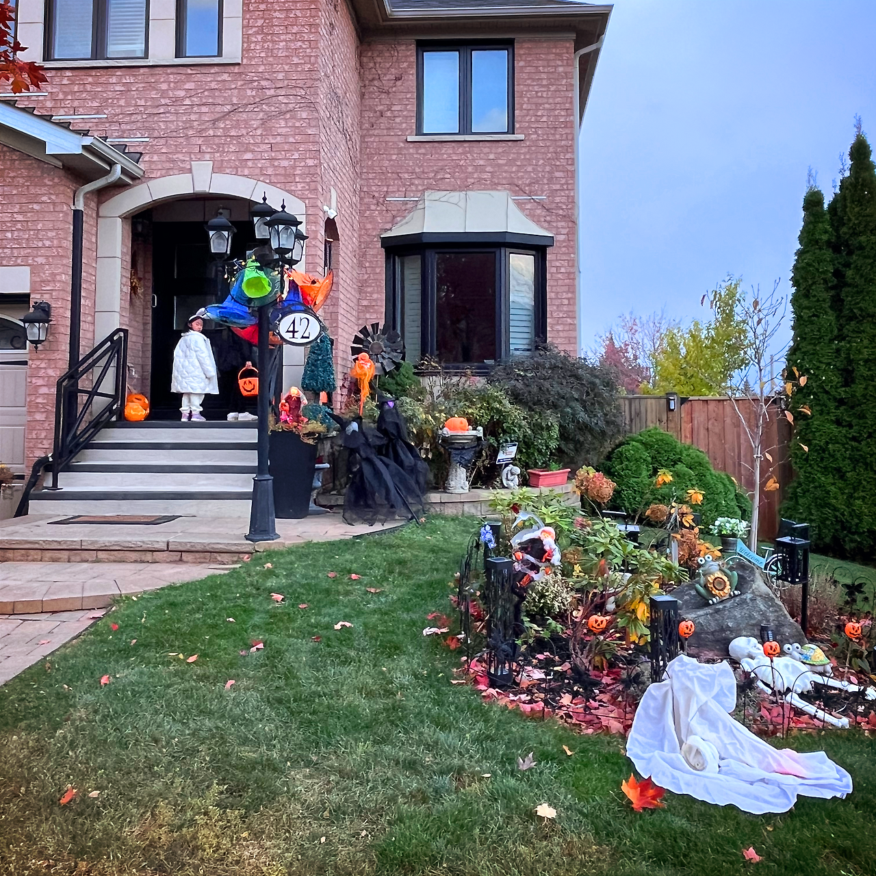 아이들이 집에서 코스튬으로 갈아입을 동안 차를 타고 동네 한 바퀴를 쓱 돌며 할로윈처럼 꾸민 집들이 모인 장소를 찾아둔 뒤, 코스튬으로 갈아입은 아이들을 데리고 이동했다.