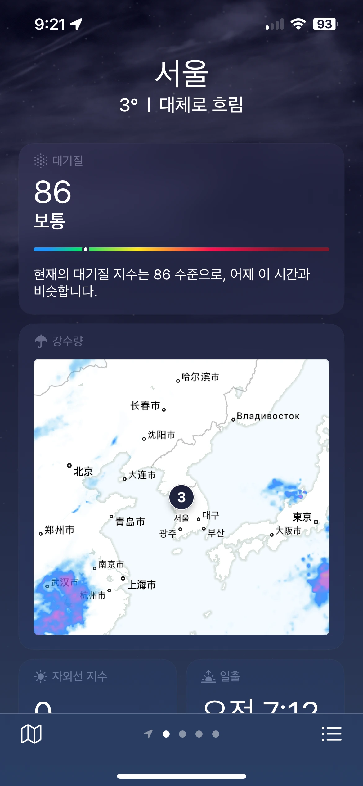 그런데 한편으로 우리나라는 지정학적 위치 덕분에 일 년의 절반인 겨울과 봄, 특히 봄철엔 미세먼지와 황사로 인해 최악의 공기질 속에 살아가고, 여름철엔 장마를, 가을이 돼서야 울긋불긋한 단풍과 함께 높고 맑은 하늘을 잠시나마 만끽하는데, 지구 반대편에선 그저 숨 쉬는 게 당연하듯 하늘도 당연히 푸르다고 생각하며 살아간다니 내심 아쉽다.