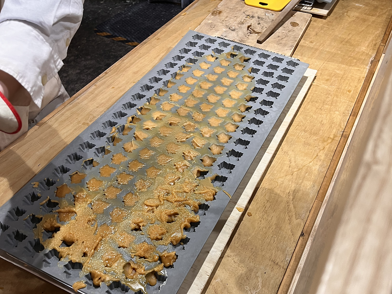 메이플 시럽을 끓인 뒤 땅콩버터를 섞어 단풍잎모양 몰드에 굳혀 만든 메이플 캔디,