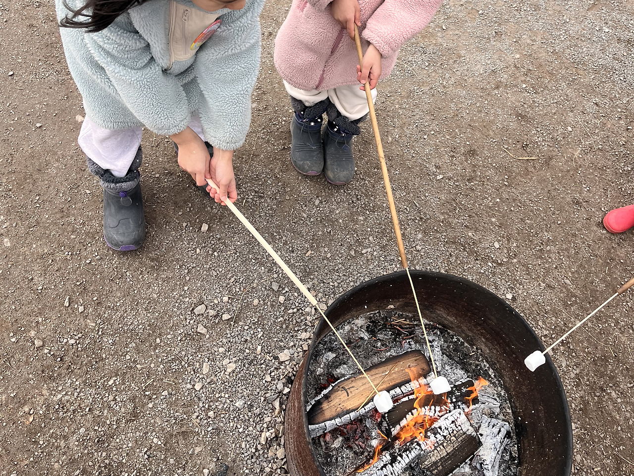 캠핑장의 필수품, 화로대에 구운 마시멜로우,
