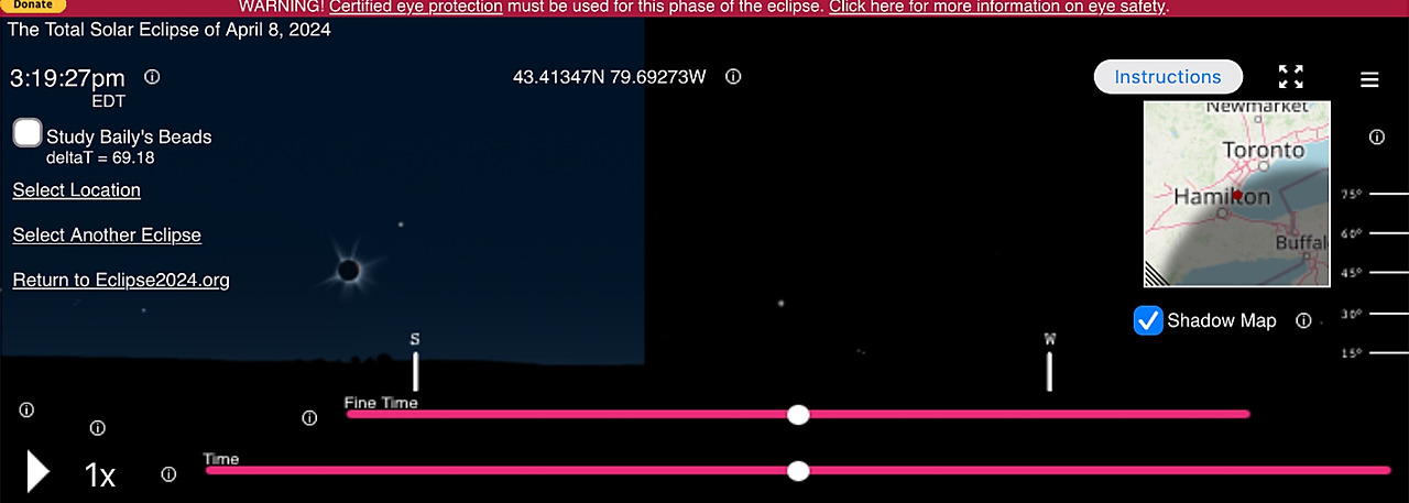 일식으로 해가 가려지는 모습과 시간을 미리 시뮬레이션 해봄으로 마음의 준비를 할 수 있다.