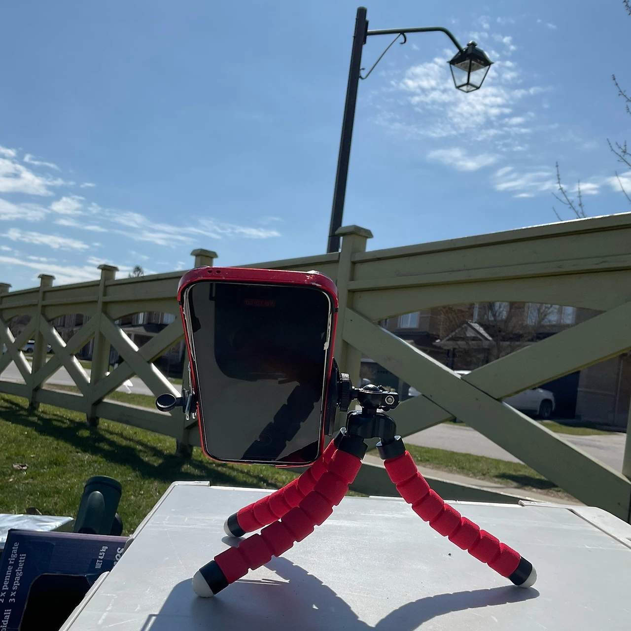없는 장비로나마 구색을 맞춰 계획해 둔 셋팅대로 핸드폰 카메라에 태양필터를 붙인 뒤 삼각대에 거치해 태양을 찍었고,