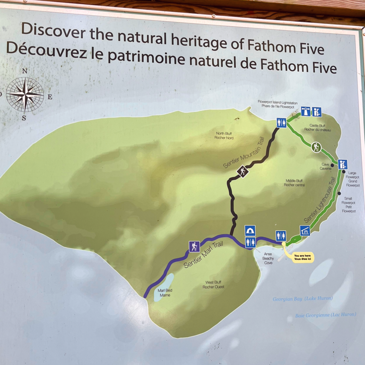 바닥이 훤히 보이는 맑은 물에 감탄하며 선착장으로 이동해 배에서 내리고나니 여러 트레일 코스를 이용해 섬을 둘러볼 수 있었는데, 5살 아이를 포함한 4명의 아이들이 있는 우리 일행은 가장 쉬운 코스를 통해 꽃병만 보고 돌아오기로 결정하고 산책을 시작했다.