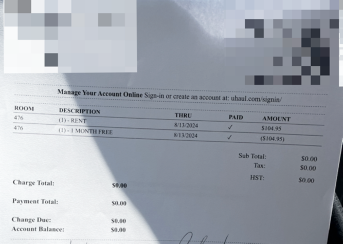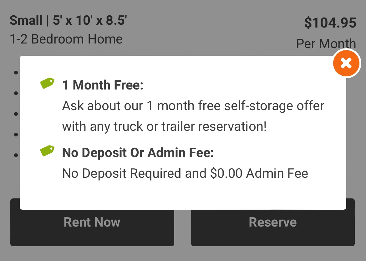 그런데 세금 포함해서 120불 정도를 결제해야 한다는 게 아닌가? 그래서 ‘1 month free’ 프로모션을 적용해 달라고 요청했지만, 이 프로모션은 U-Haul 트럭을 렌트할 경우에만 적용된다고 한다. 홈페이지에 들어가 확인해 보니, 필자가 제목만 보고 1개월 무료라고 착각한 것이었다.