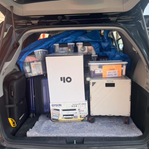 이사 전날, U-Haul 창고에 보관해 뒀던 이삿짐을 택배로 발송하고, 나머지 짐은 트렁크에 실어놔야 했다.