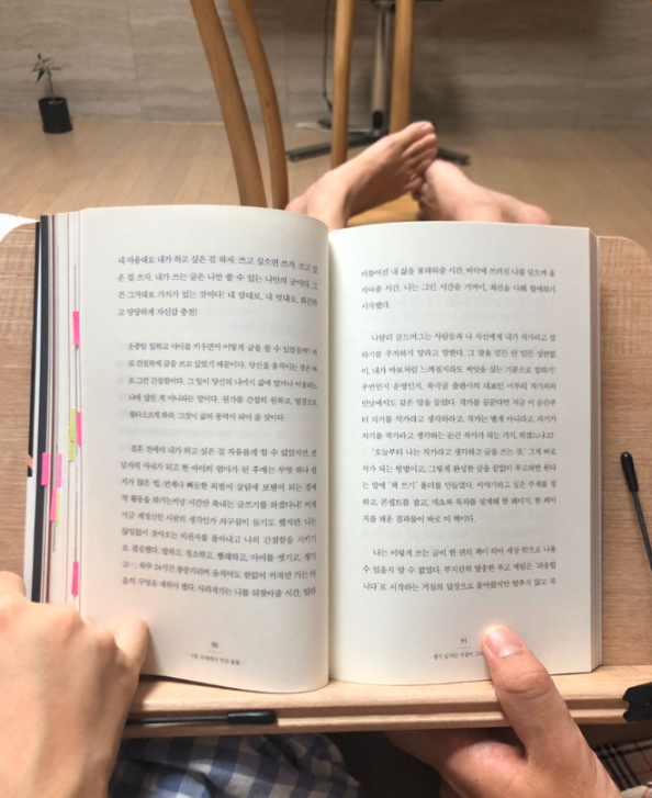 토요일 오전, 인견 잠옷 사이로 들어오는 시원한 선풍기 바람을 느끼며 책을 읽는 이 평화로운 순간은 우리에게 얼마 남지 않은 시간임을 안다. 이 순간을 마음껏 누리고, 마음껏 감사할 작정이다.