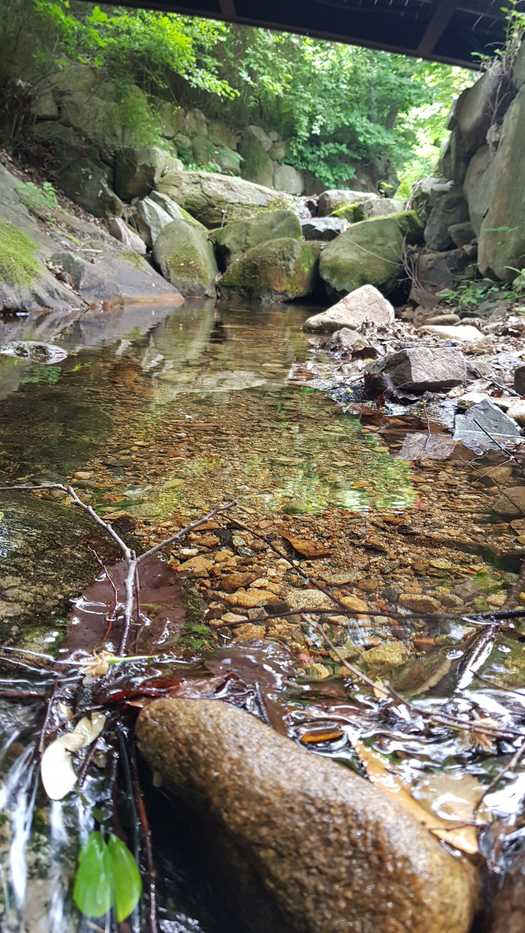 사진은 가야산의 최상류에서 불과 300m 하류인 마을 중앙을 흐르는 하천의 냇물의 모습입니다.