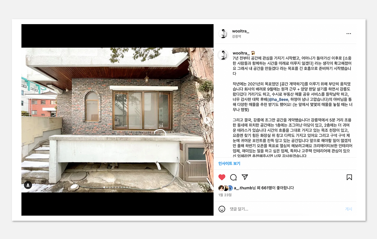 그렇게 결국, 제 꿈을 구체적으로 만들 수 있는 공간을 강릉에 계약할 수 있게 되었습니다. 다음 편에서는 제가 어떤 기준으로 공간을 계약하게 되었는지에 대해서 말씀드려볼게요.