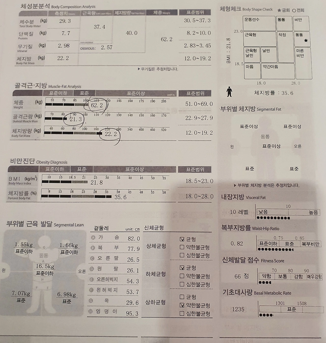 (왼쪽) 2020년 9월21일 인바디 결과 (오른쪽) 2022년 6월2일의 인바디 결과