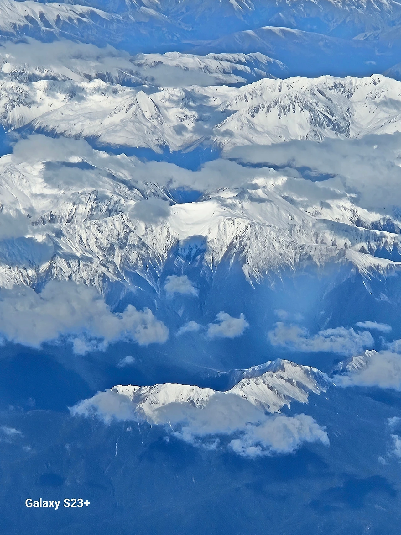 퀸스타운으로 가는 비행기에서 본 설산과 구름