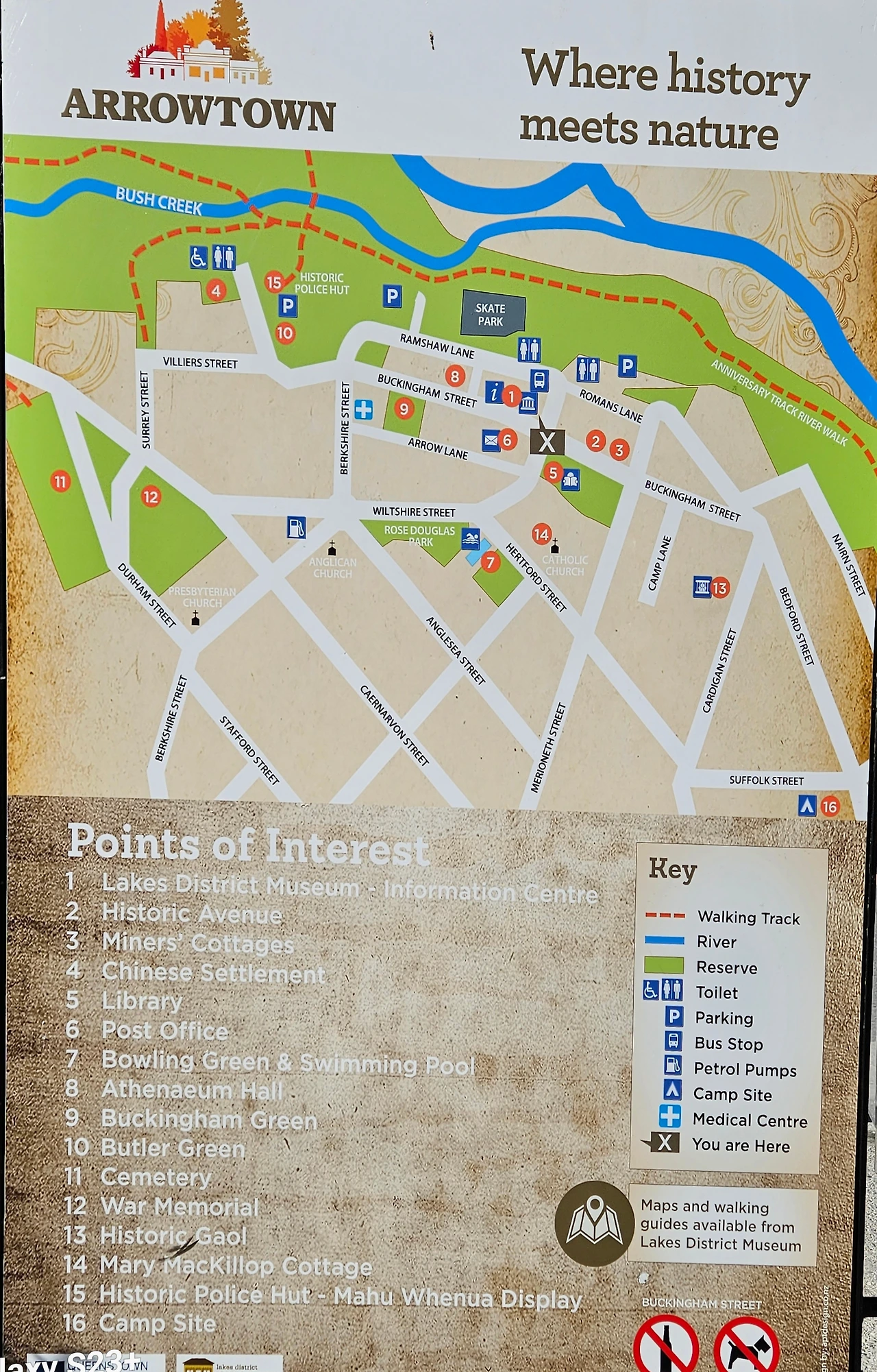 친구가 오클랜드로 올라가는 날이다. 첫날은 오후 늦게 도착해서 구경이랄 것 없이 저녁 먹고 얘기하느라 시간을 보냈다. 우리 둘은 예쁜 마을에 가서 한가로운 시간을 보내기로 했다 퀸스타운에서 차로 20분 정도 떨어진 애로우타운(Arrowtown)은 19세기 건물이 남아있고 그 시절의 정서를 느껴볼 수 있는 곳이었다. 1862년 골드러시(Gold Rush) 때 금을 캐러 사람들이 몰려오며 형성된 지역이라고 한다. 애로우타운이라는 이름은 애로우강(Arrow River)에서 따왔는데, 강 물살이 빠르고 애로우와 부쉬 개울(Bush creeks)의 합류점이 화살촉 모양이어서 그렇다는 유래가 있다. 혹자는 금 캐러 왔던 사람들이 순식간에 쑥 빠져나가서 그런 이름이 생겼다고도 한다.