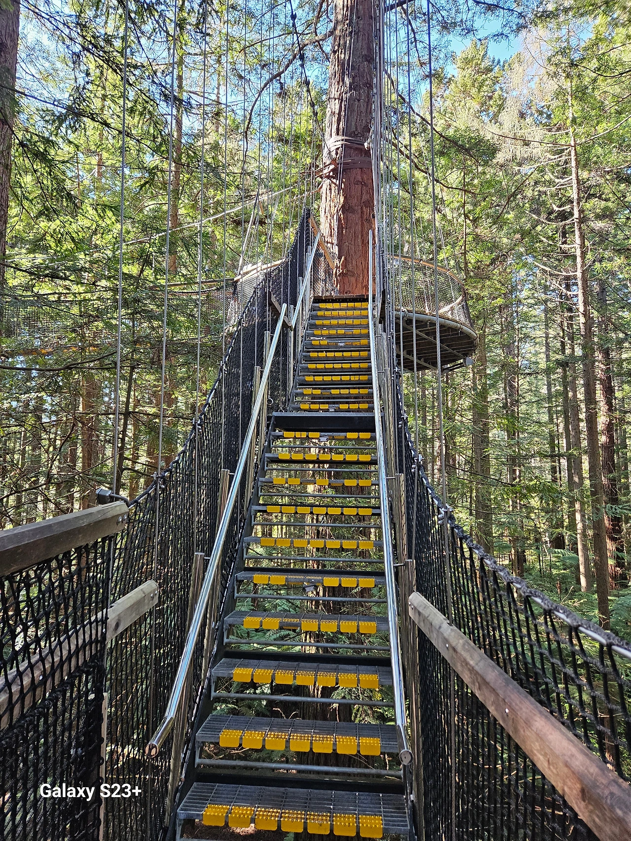내 눈에는 주변의 나무가 다 똑같아 보였다. 안내판은 불과 한 시간만 지나도 다 잊어버릴 테니 읽지도 않았다. 그래서 다리 중간에 있는 포인트에서 사진만 후루룩 찍고 빨리빨리 서둘렀다. 어디가 반환점인가를 궁금해하며 건너는데, 몇 개의 포인트 앞에 나무를 관리하는 두 명의 인부가 보였다. 밧줄을 매달고 나무 위에 올라 뭔가 영양제(?) 같은 것을 놓고 있었다. 그 여자를 뒤로하고 앞서 건너기 시작하면서 한 명도 만나지 못했기 때문에 은근히 반가웠다. 인부가 있는 곳에 도착했다. 긴장과 추위로 차가워진 손을 비볐다. 그는 웃는 낯으로 인사를 건넸다. 공기가 좋지 않냐며. 나는 다리 건너는 일에 몰두하느라 너무 긴장되어 잘 모르겠다고 했다. 그는 괜찮냐고 물으며 너무 긴장하지 않아도 된다고 했다. 이 다리는 정말 튼튼하다고. 그리고 곧 반환점이니 기운을 내라고 했다. 듣던 중 반가운 소리였다. 곧 반환점이라니. 그에게 짧게 인사하고 얼른 건넜다.