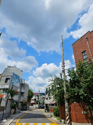 동네어귀에서 찍은 사진의 간판을 지웠더니 폐허건물처럼 보여 예쁘지 않다. AI가 불필요한 부분(사람 얼굴, 자동차 번호 등)을 자동으로 잘 지워줘 예전처럼 스티커로 가리지 않아 사진이 좀 더 자연스럽다. 하지만, 가끔 이렇게 의도하지 않은 몰골이 될 때 당황스럽다. 사진의 초점은 낮은 구름이다.