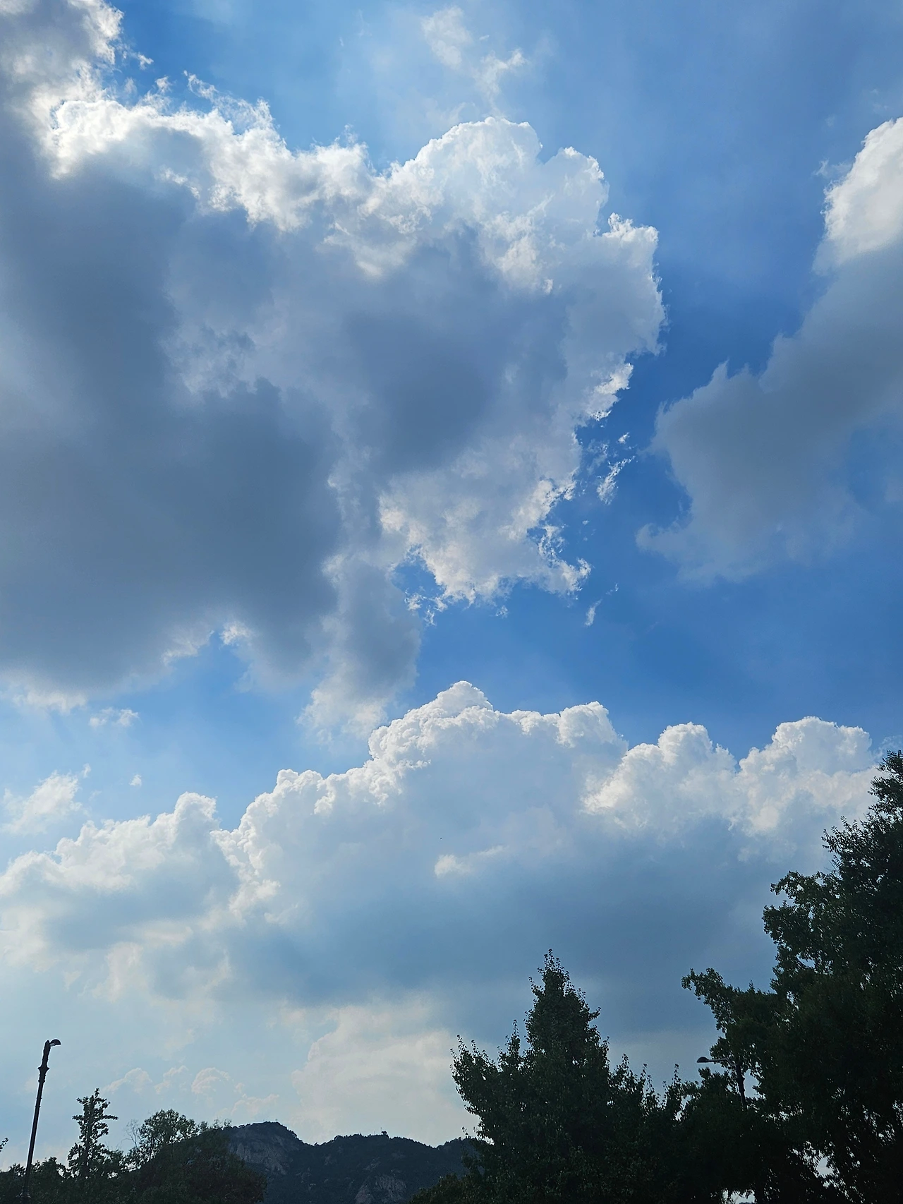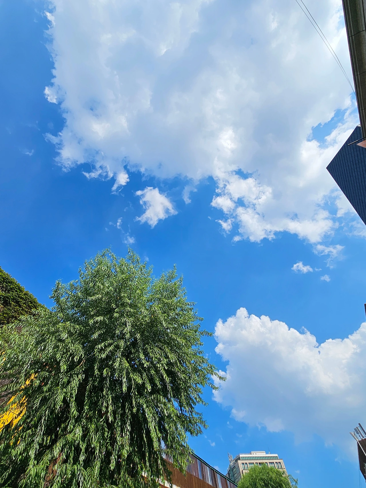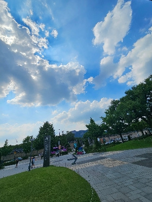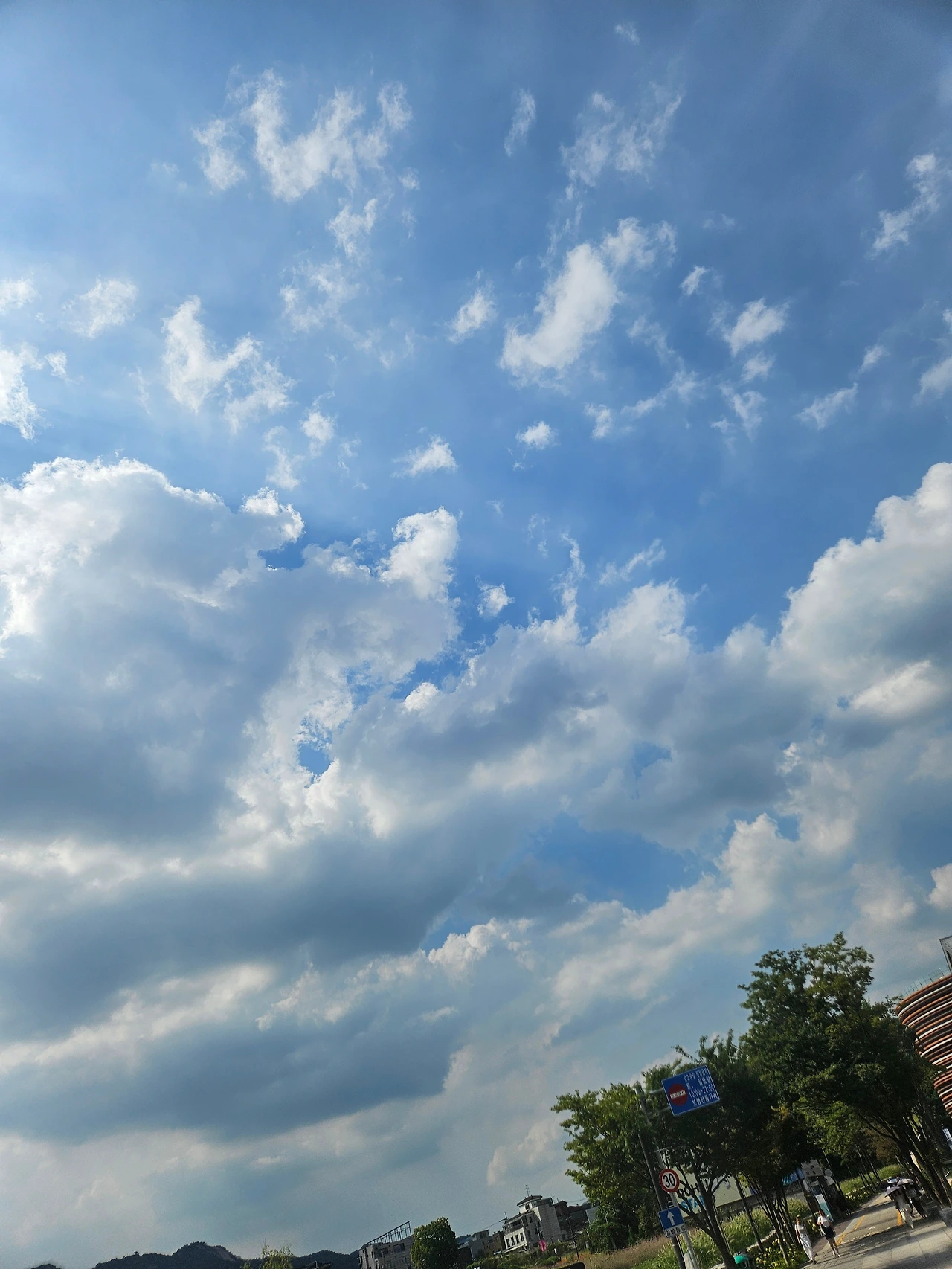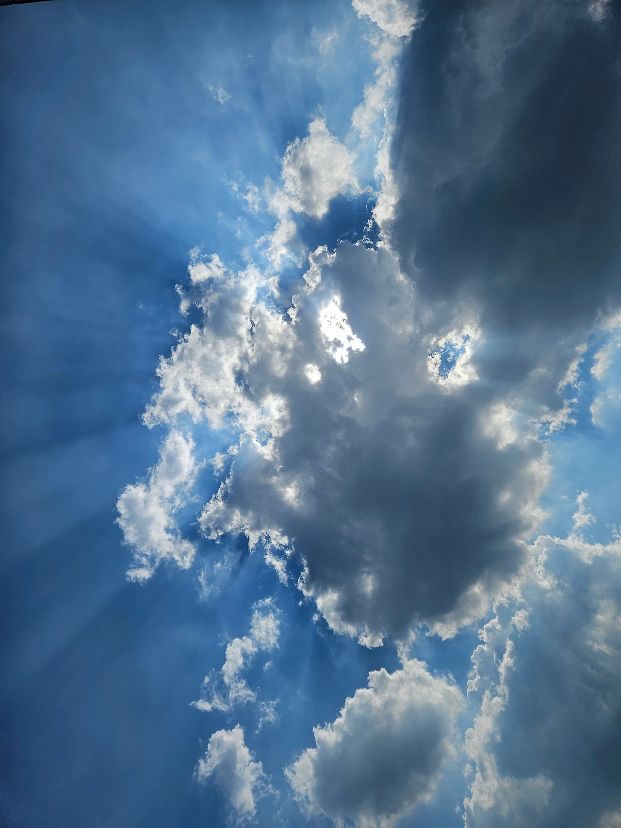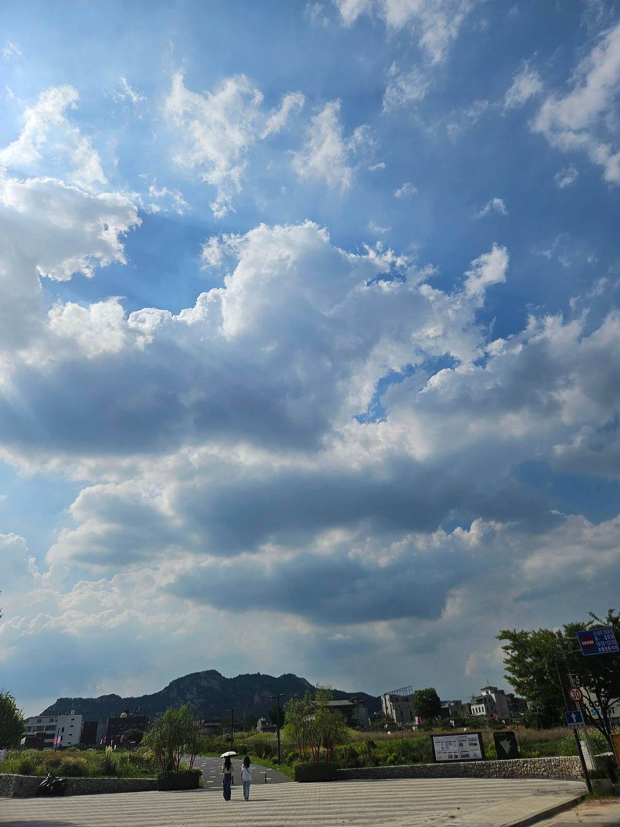 오늘의 하늘은 아주 파랬다. 햇빛은 강렬 그 이상의 빛을 쐈다. 하늘에 파란 광선이 조명처럼 뻗어나갔다. 구름만 줌인해서 찍은 걸 보니 바닷속에서 수면 위에 비친 빛을 보는 것 같다. 물 밖으로 나갈 수 있는 유일한 통로처럼 보인다. 어두움을 벗어나 광명을 찾을 것 같은 기분.