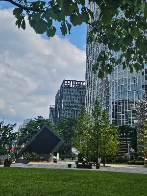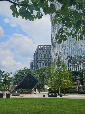 점심시간에 사무실에서 도시락을 먹고 몸을 녹이러 나온 공원. 더운 바람을 맞으며 벤치에 앉아 지나가는 사람들을 봤다. 신호등이 초록색으로 바뀌면 한 무리의 사람들이 우르르 작은 공원 앞을 지나간다. 점심시간이 끝나가는 시간.