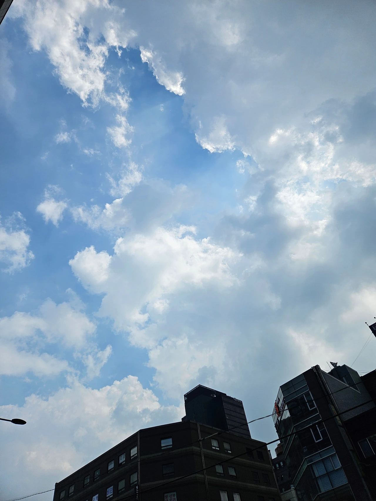 대부분 구름이 물러나고 바다 같은 하늘이 남았다. 완전히 깜깜한 밤이 오기 전 하늘을 찍으려고 서둘러 건물 밖으로 나갔다. 휴대폰만 달랑 들고. 다양한 장소의 하늘을 찍고 싶은데 생활 반경이 협소하여 그 하늘이 그 하늘인 기분이다.