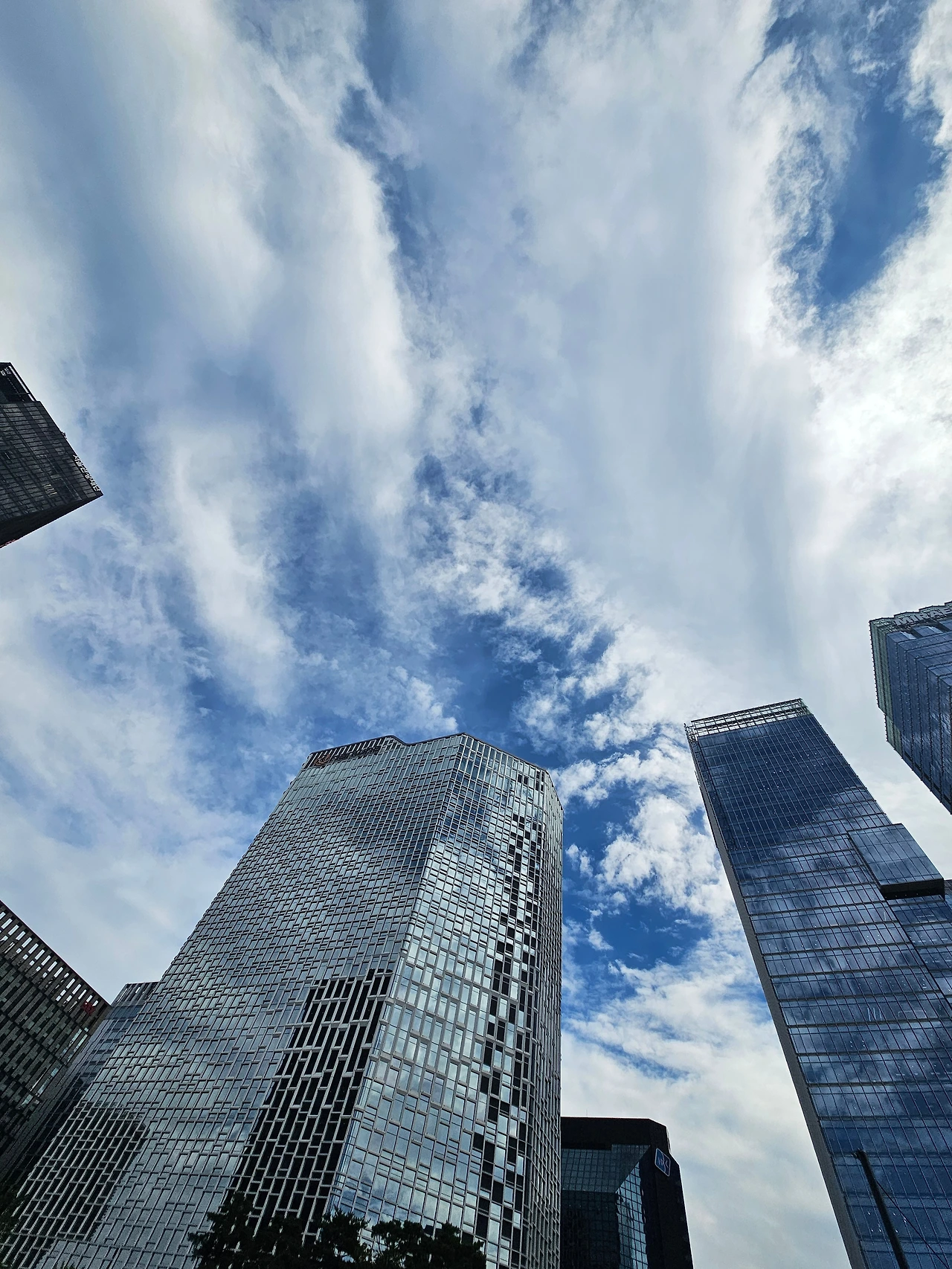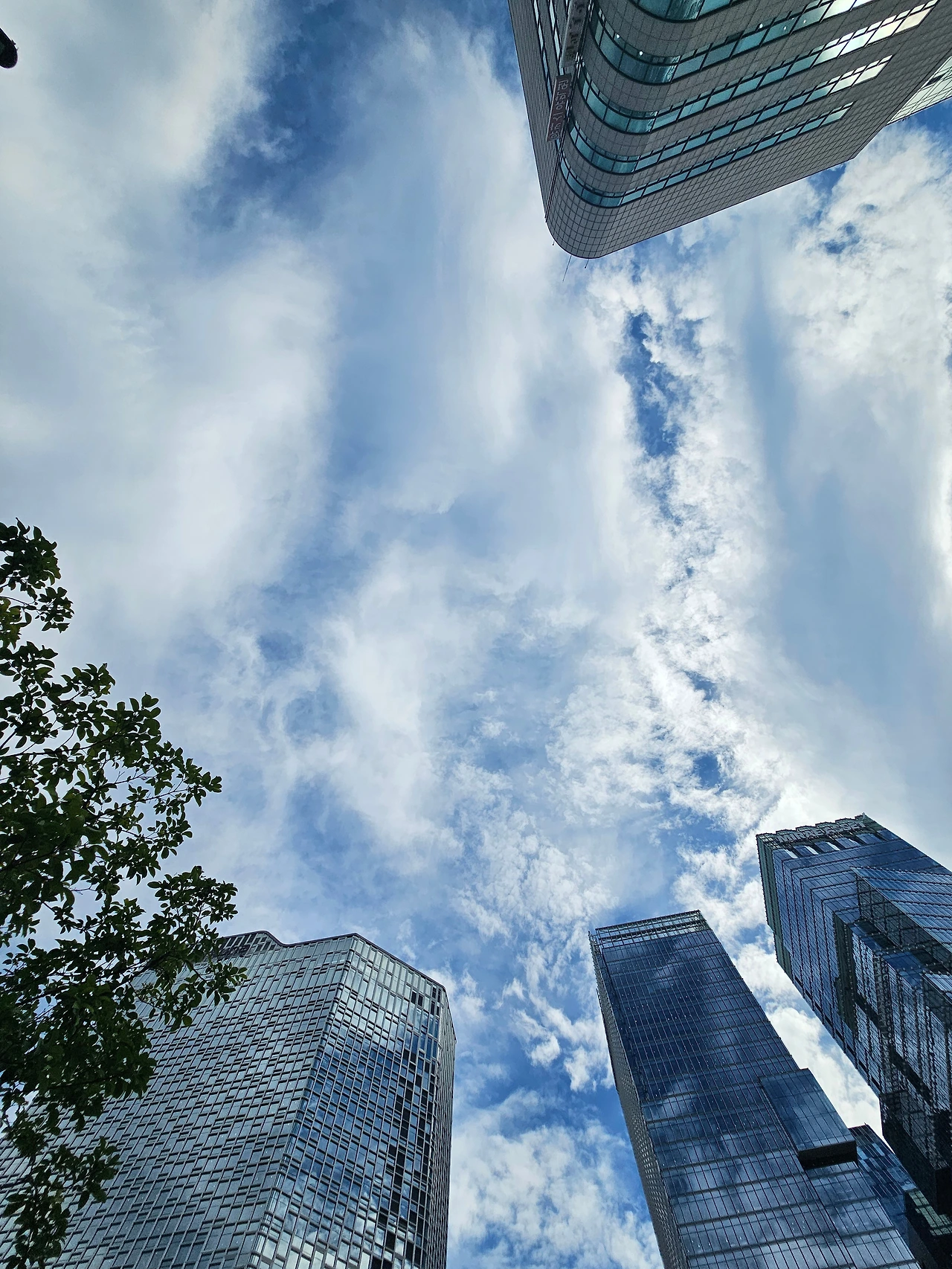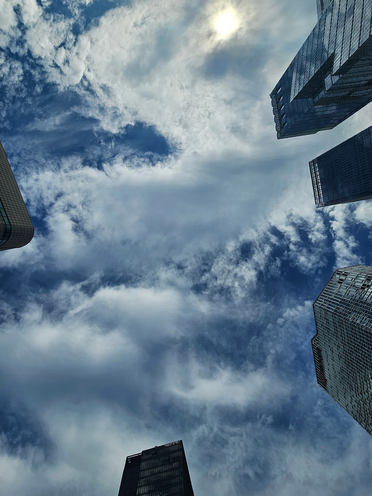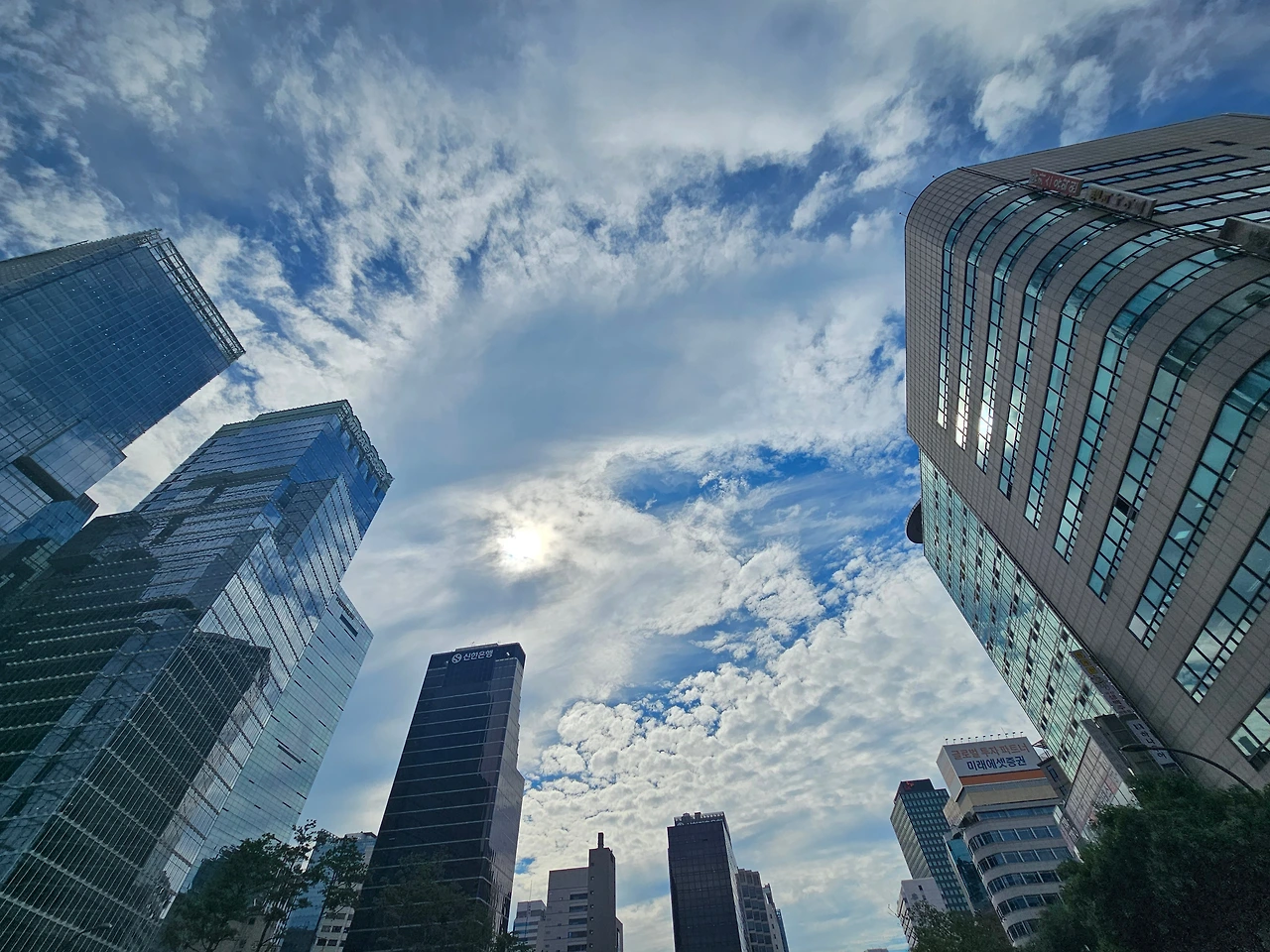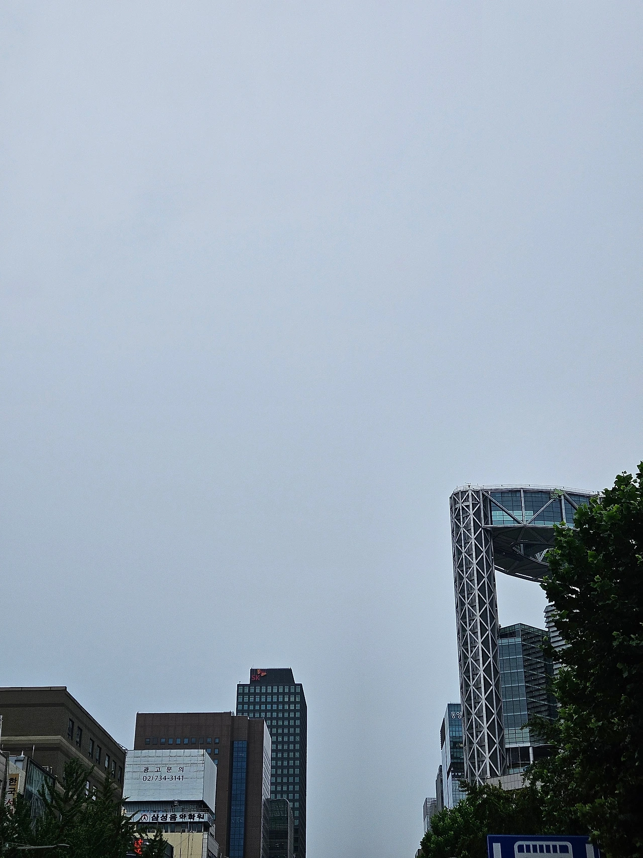 아주 잠깐 사무실에서 나왔기에 사진을 연달아 찍었다. 찍은 시간이 다 비슷한데 색깔이 진짜 다르다. 파란 하늘빛으로 물든 빌딩이 굉장히 싱그럽게 보인다.