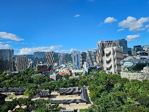 서울 시청 서소문 별관에 갈 일이 있었다. 거기 13층에 전망카페가 있다. 누구나 무료로 올라갈 수 있다. 덕수궁이 한눈에 내려다보이는 포토존에서 멋진 전경을 찍었다. 도심 빌딩 속 궁궐의 모습은 언제 봐도 멋있다. 가을 단풍이 물든 광경은 더 아름답다. 오늘도 충분히 예뻐서 자리를 뜨기가 싫었다. 창문을 통해 찍은 사진인데 유리창이 가로막혀 있다는 느낌이 하나도 들지 않는다.