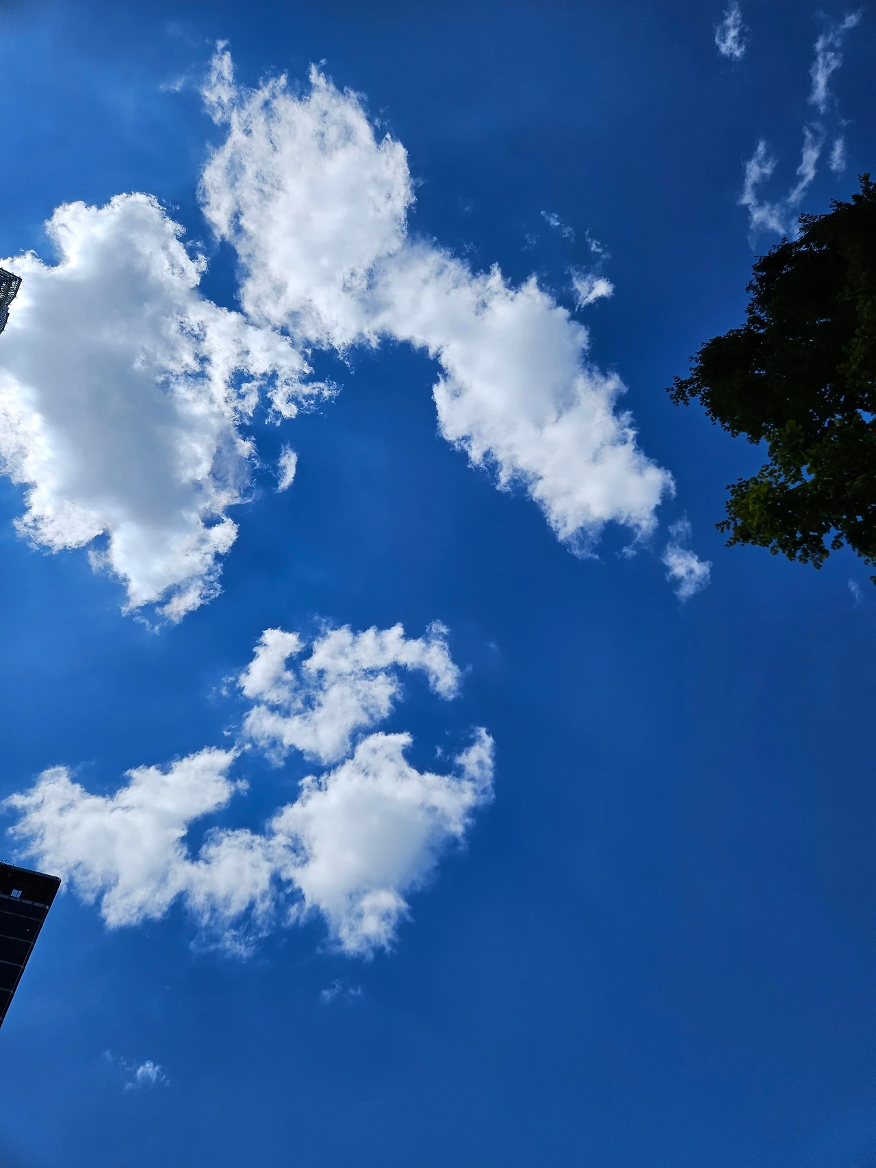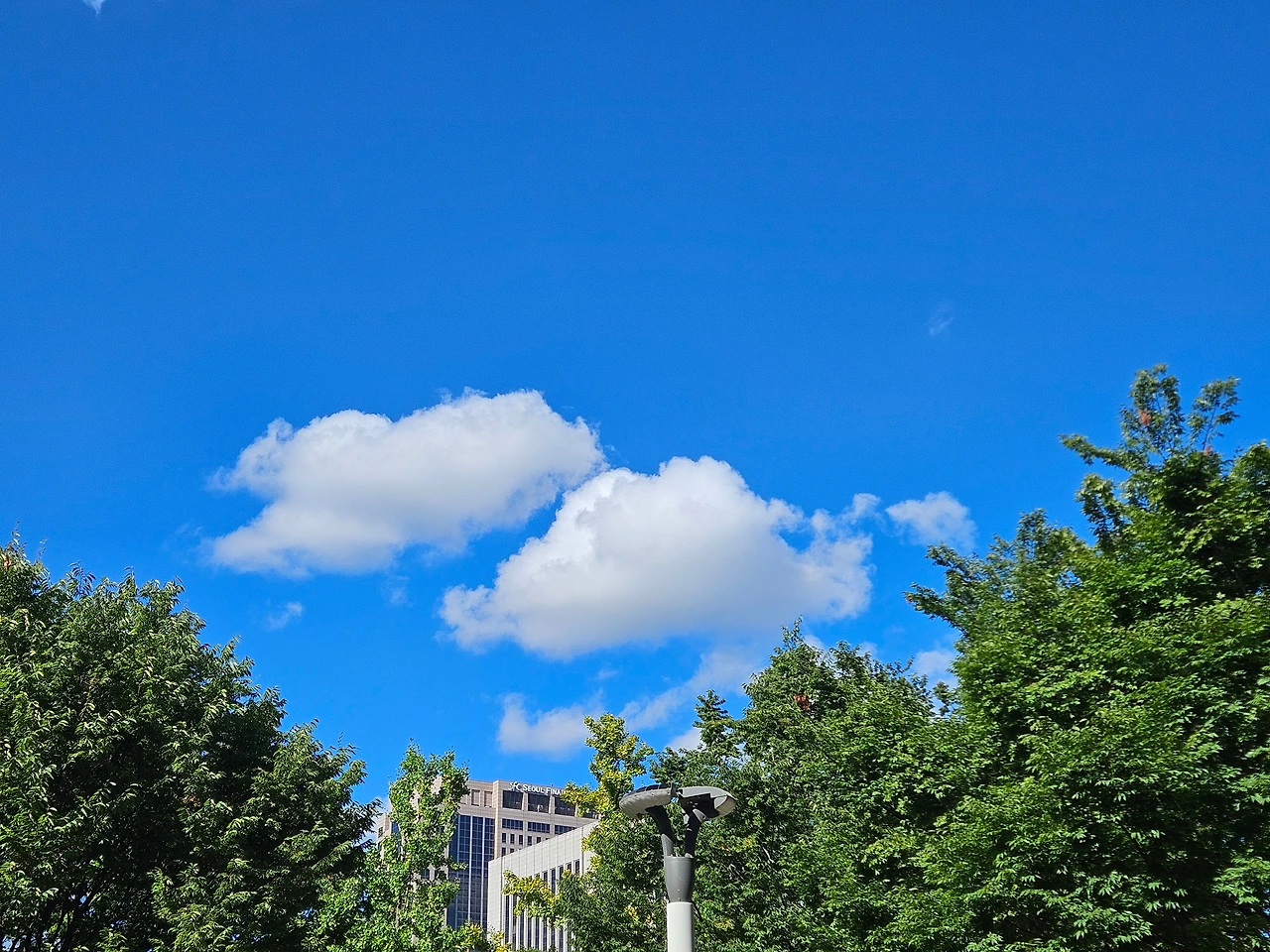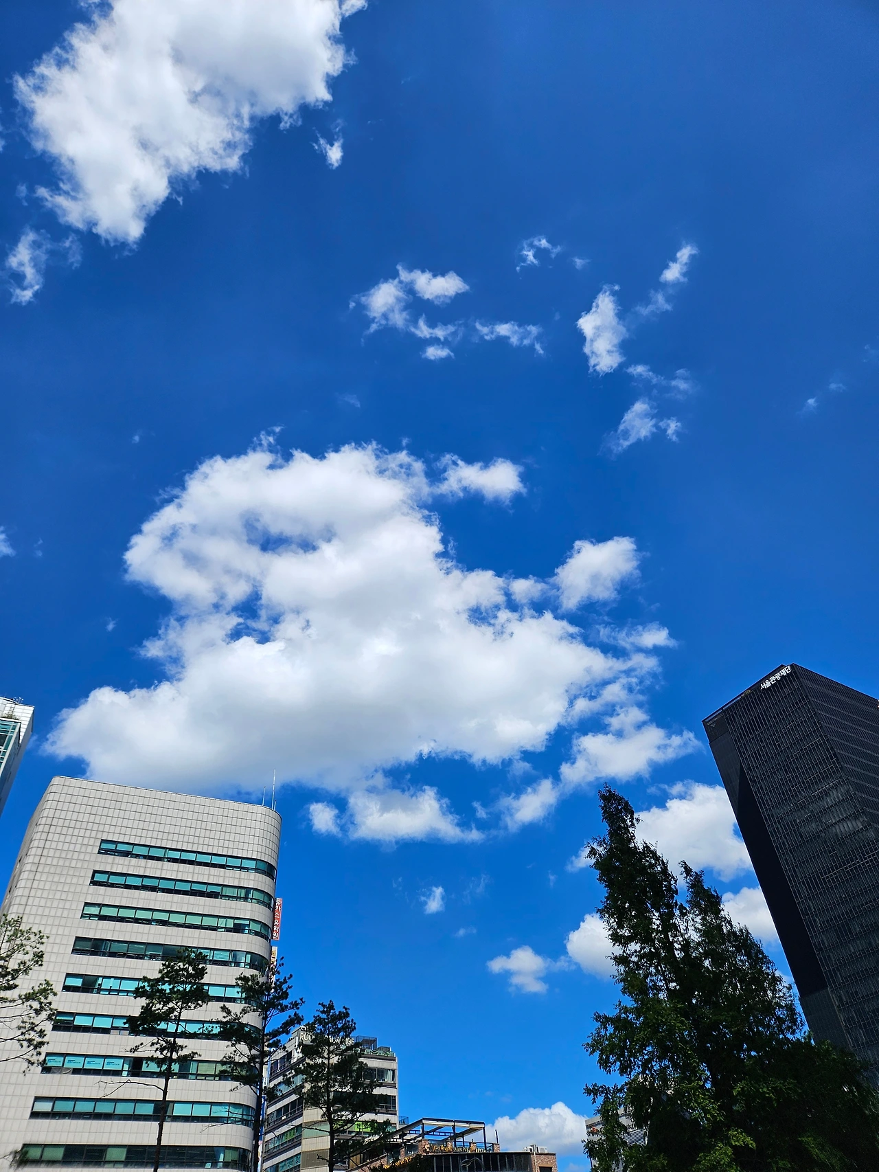 회사로 돌아가는 길. 하늘에 시선을 주느라 고개가 아팠다. 구름만 확대해서 찍었다. 파란색이 오묘하다. 구름은 어찌 그리 새하얀지.