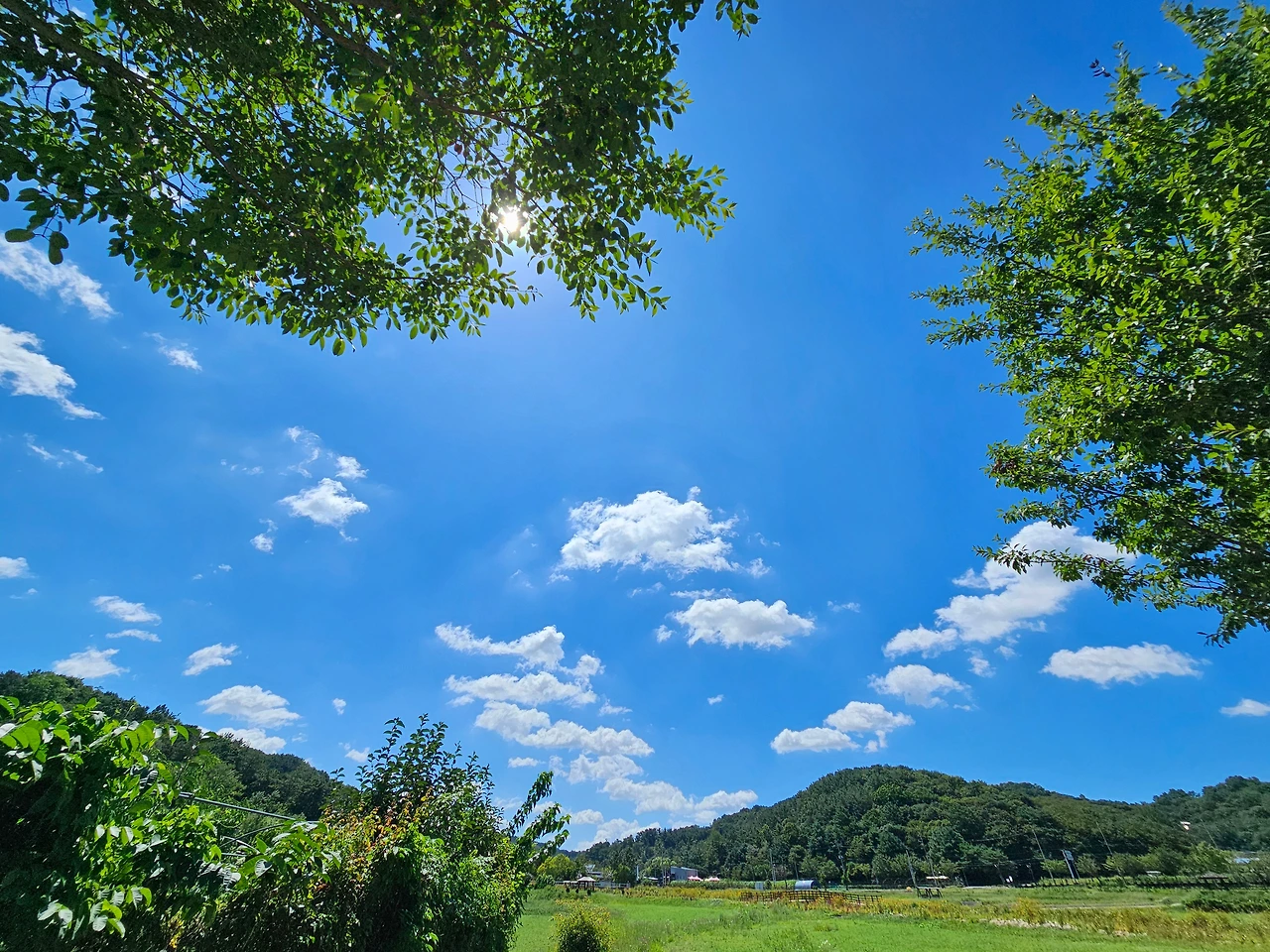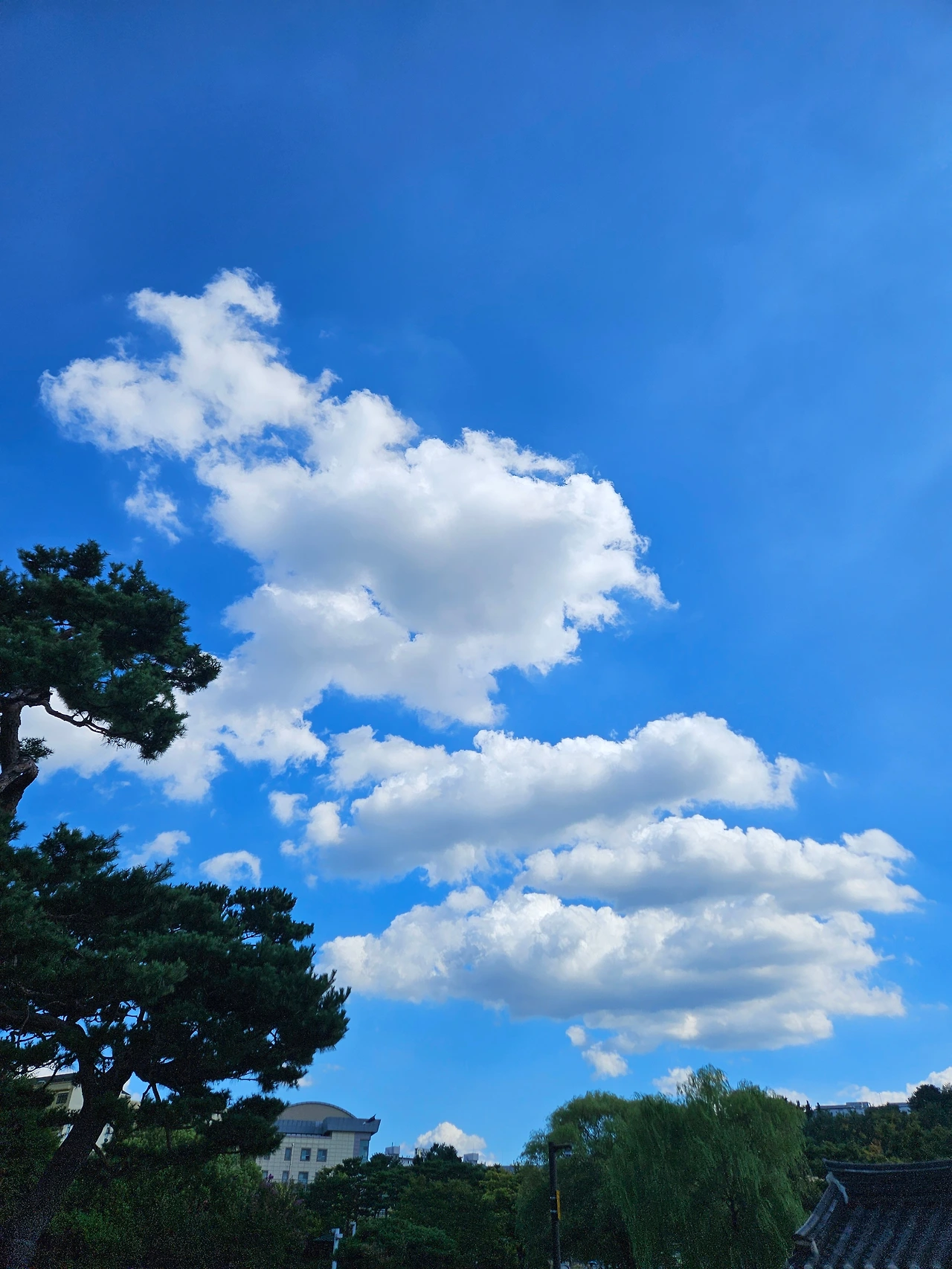 도시의 빌딩 숲이 아니라 나무, 산과 함께 보는 하늘이 훨씬 더 그림 같다. 아주 느리게 흘러가는 구름이 자연의 흐름처럼 느껴졌다. "시골냄새가 난다"라고 했더니 같이 간 후배가 "대전은 도시예요, 광역시"라며 시골이 아니라고 했다. 그 말이 맞는데 산, 숲을 봐서 그런지 시골 같았다.