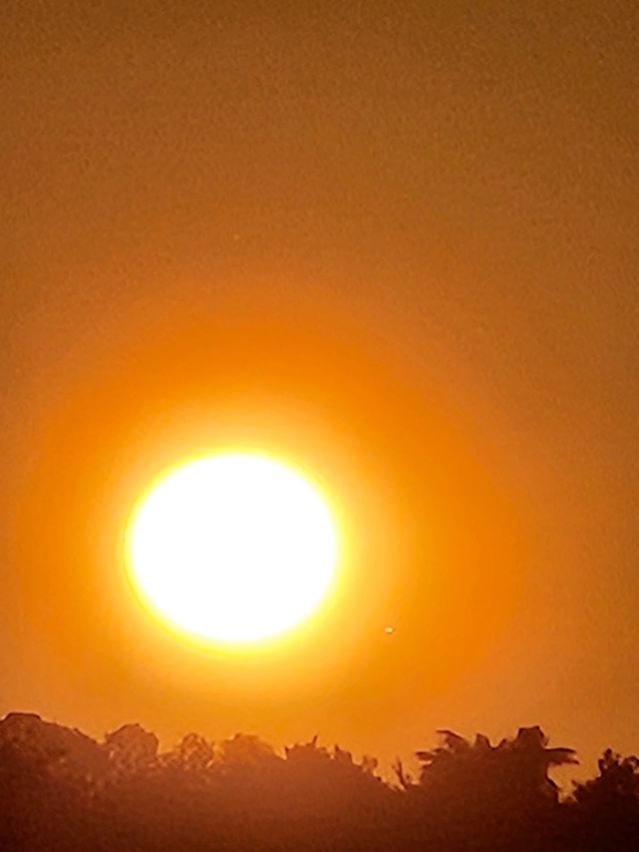 아침 일찍 대전으로 왔다. 평소보다 일찍 일어나서 일출을 볼 수 있었다. 떠오르는 태양빛이 강렬해 마주 볼 수 없었다. 휴대폰을 창밖으로 내밀어 30배 확대하여 찍었다.