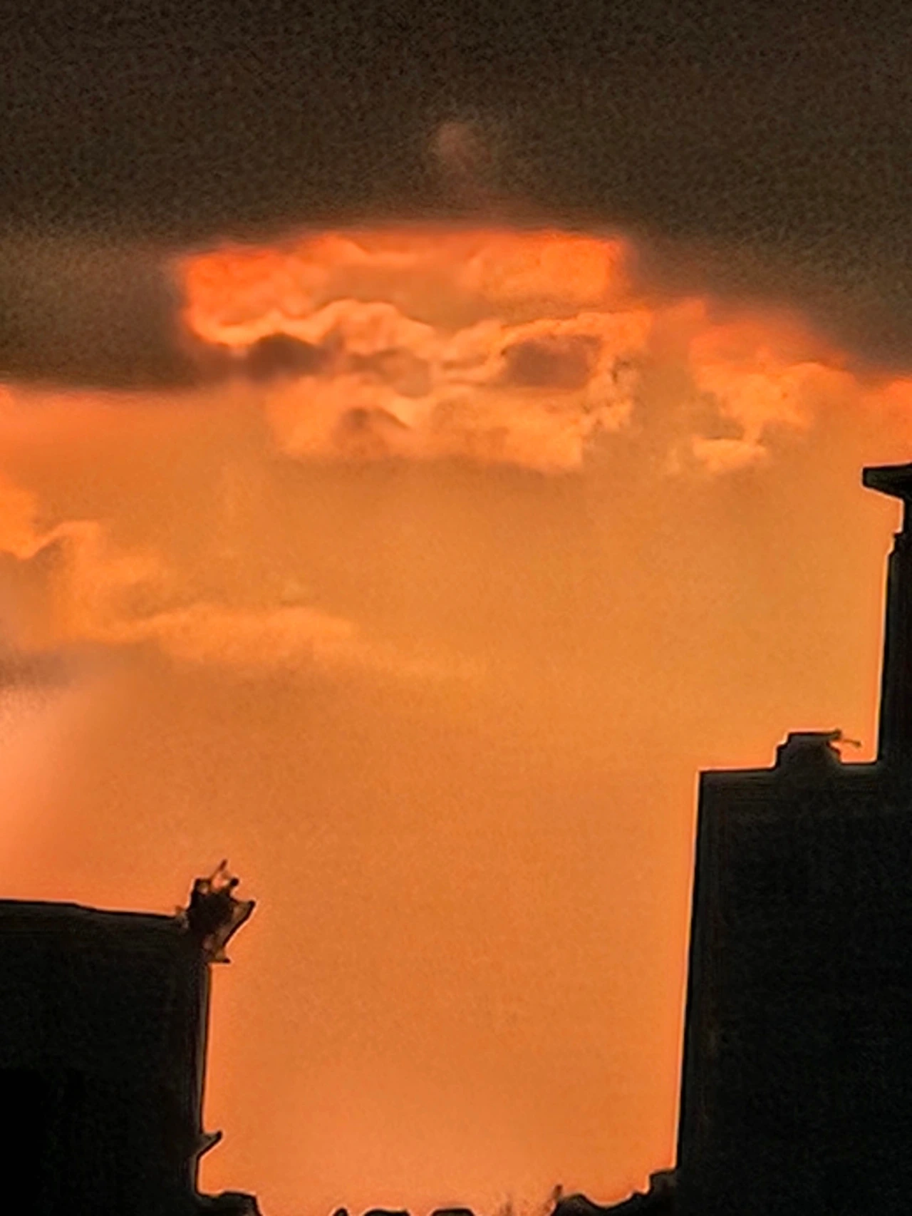 해가 지는 서쪽 하늘이다. 태양이 거의 지평선 너머로 사라지려고 한다. 빛이 강하면 그 주변은 어둠이 짙어지는 법이라더니 과연 그렇다. 노을을 확대해서 봤더니 요괴가 보인다. 구름 요괴. 안경을 낀 것처럼 보이기도 하고 눈이 큰 것처럼 보이기도 한다. 마치 빛을 지키려는 수문장 같다.