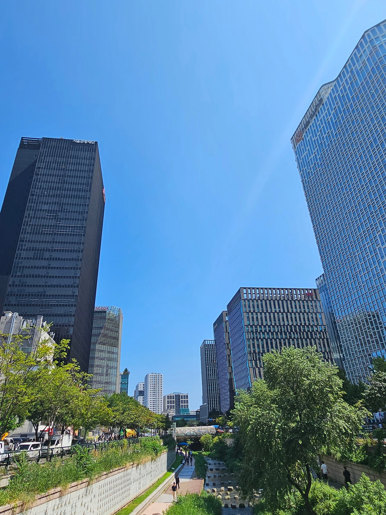 오늘 아침 하늘도파랬다. 점심시간까지 구름 없는 하늘이 유지되었다. 한낮의 태양이 눈부셔 하늘을 제대로 쳐다볼 수 없었다.
