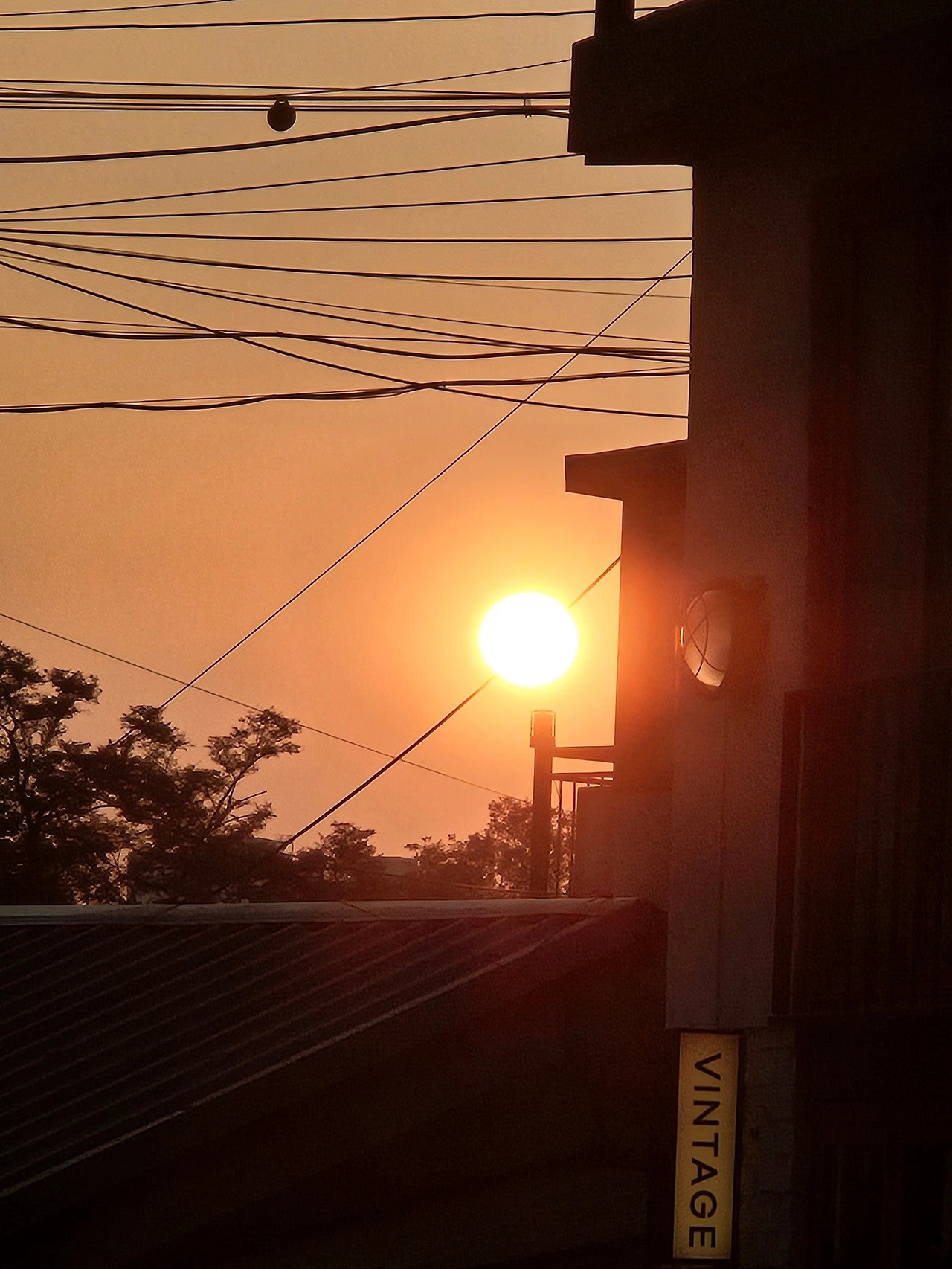 쇼핑하고 수다 떨다 저녁시간이 되어 태국식당으로 갔다. 어느새 저녁노을이 지고 있었다. 10배인지 20배인지 몇 배 확대하여 찍었는지 기억나지 않는다. 어쨌든 굉장히 이국적인 느낌의 노을사진을 찍었다.