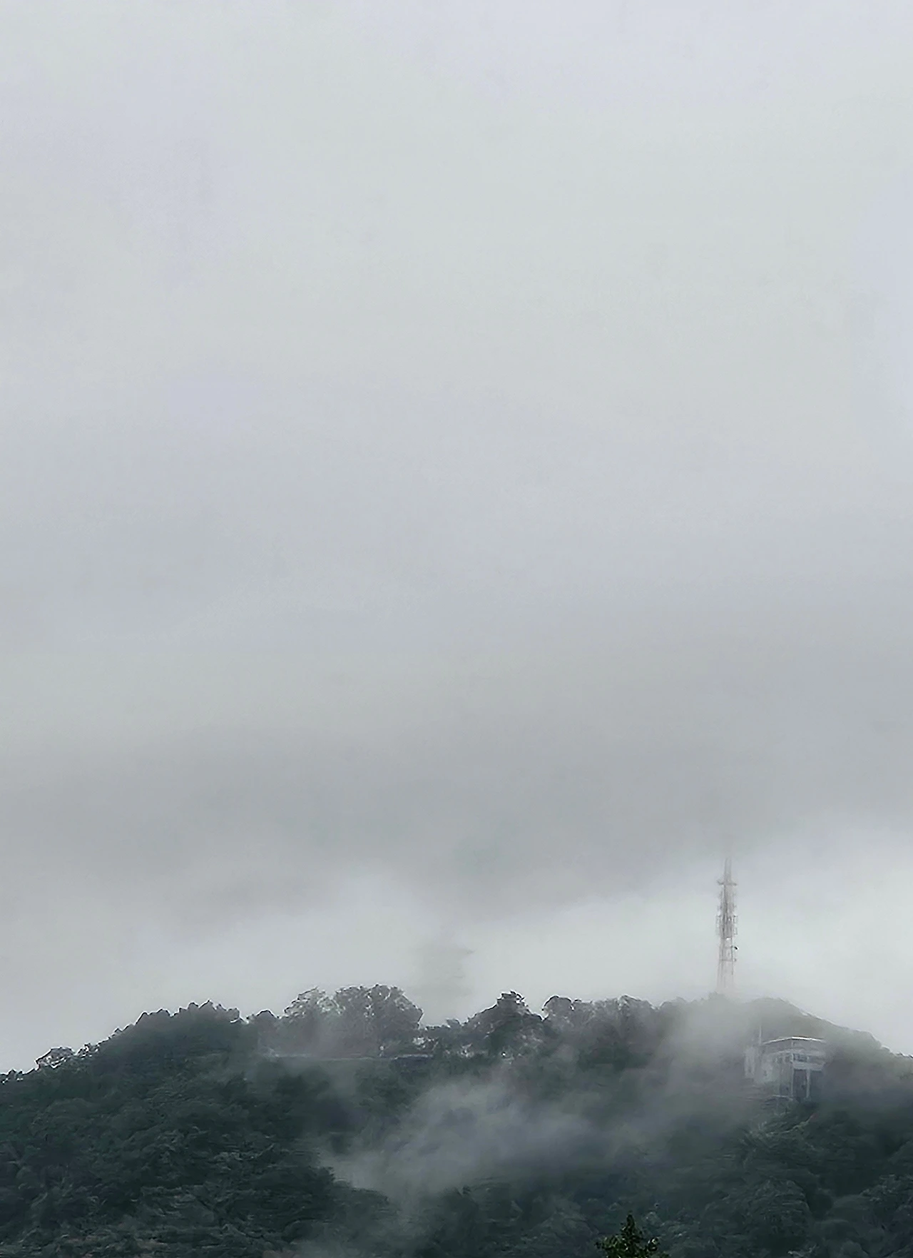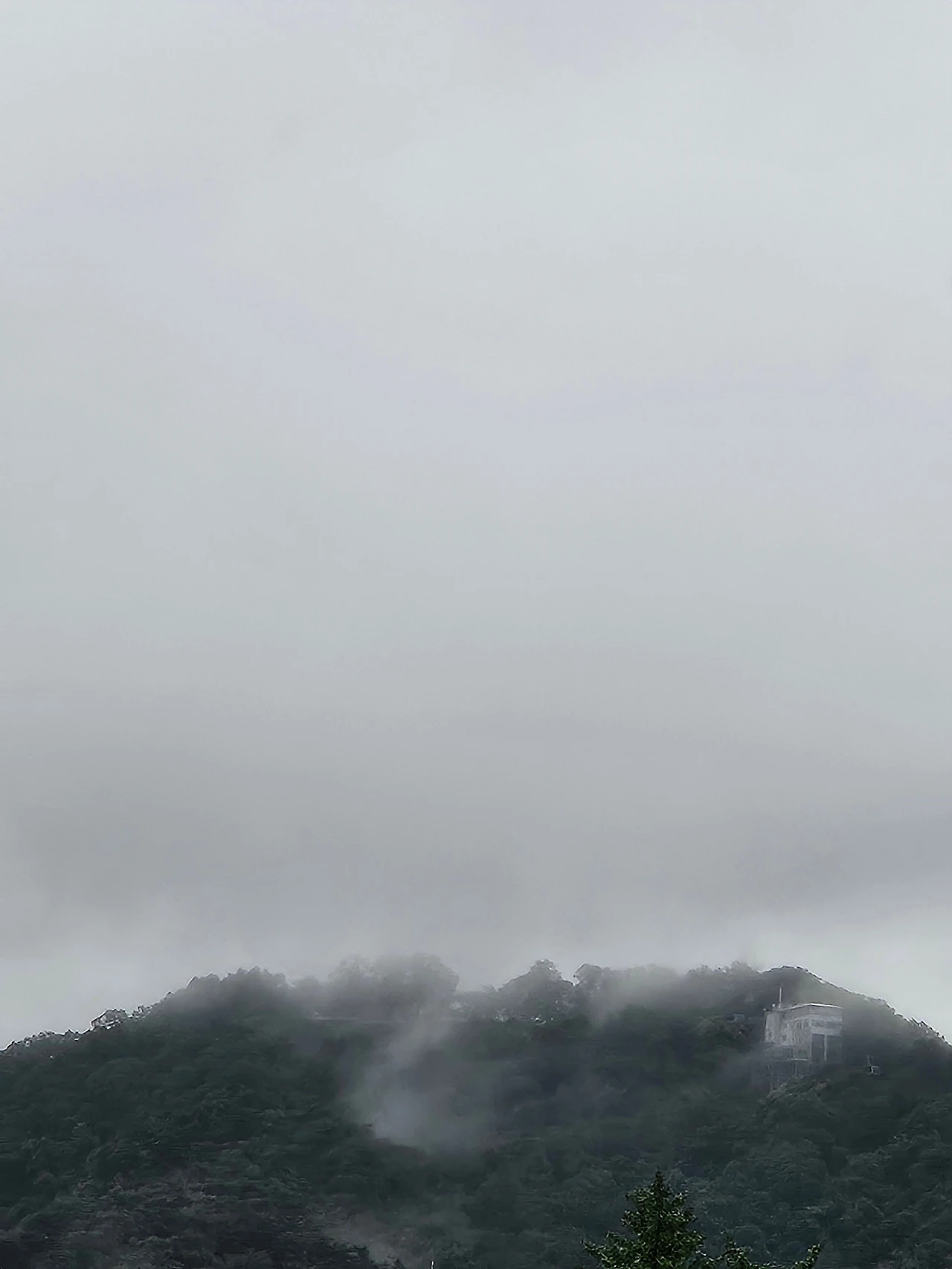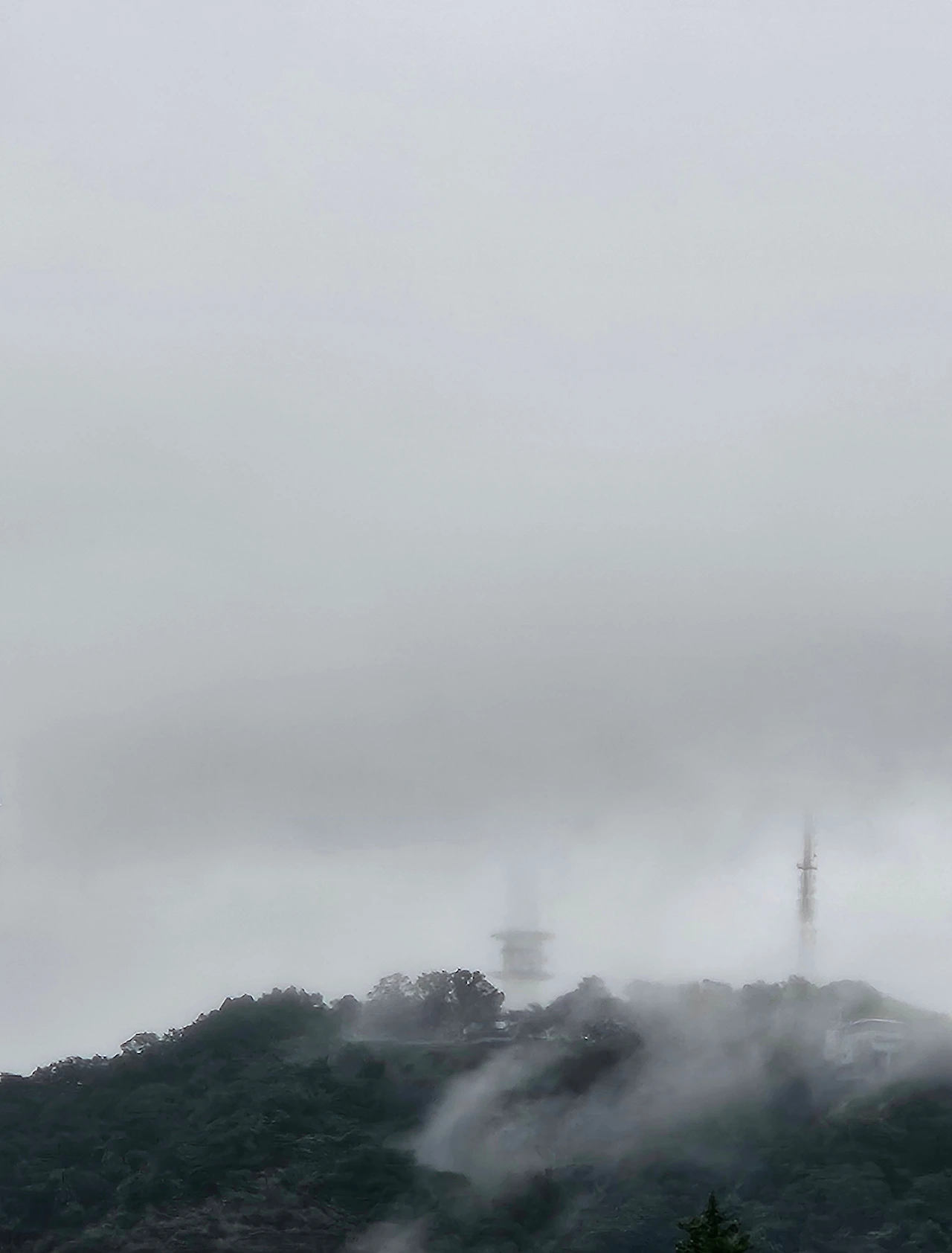부랴부랴 사무실에 출근하고 난 후에야 하늘 사진을 찍지 않았음을 알아챘다. 다시 건물 밖으로 나가기 귀찮아 창밖을 찍었지만 확대하자 창문에 부딪힌 빗방울에 초점이 맞춰졌다. 그런데 남산에 산안개가 내려앉아 남산타워를 가린 모습이 보였다. 얼른 엘리베이터를 타고 1층으로 내려갔다. 비가 조금 흩뿌렸지만 우산을 쓰지 않고 남산을 찍었다. 안개가 빠르게 걷히는가싶었는데 다시 안개에 휩싸였다. 수묵화 느낌의 사진을 가만히 들여다보자 현명한 한 노인이 저 안갯속에 있을 것만 같다.