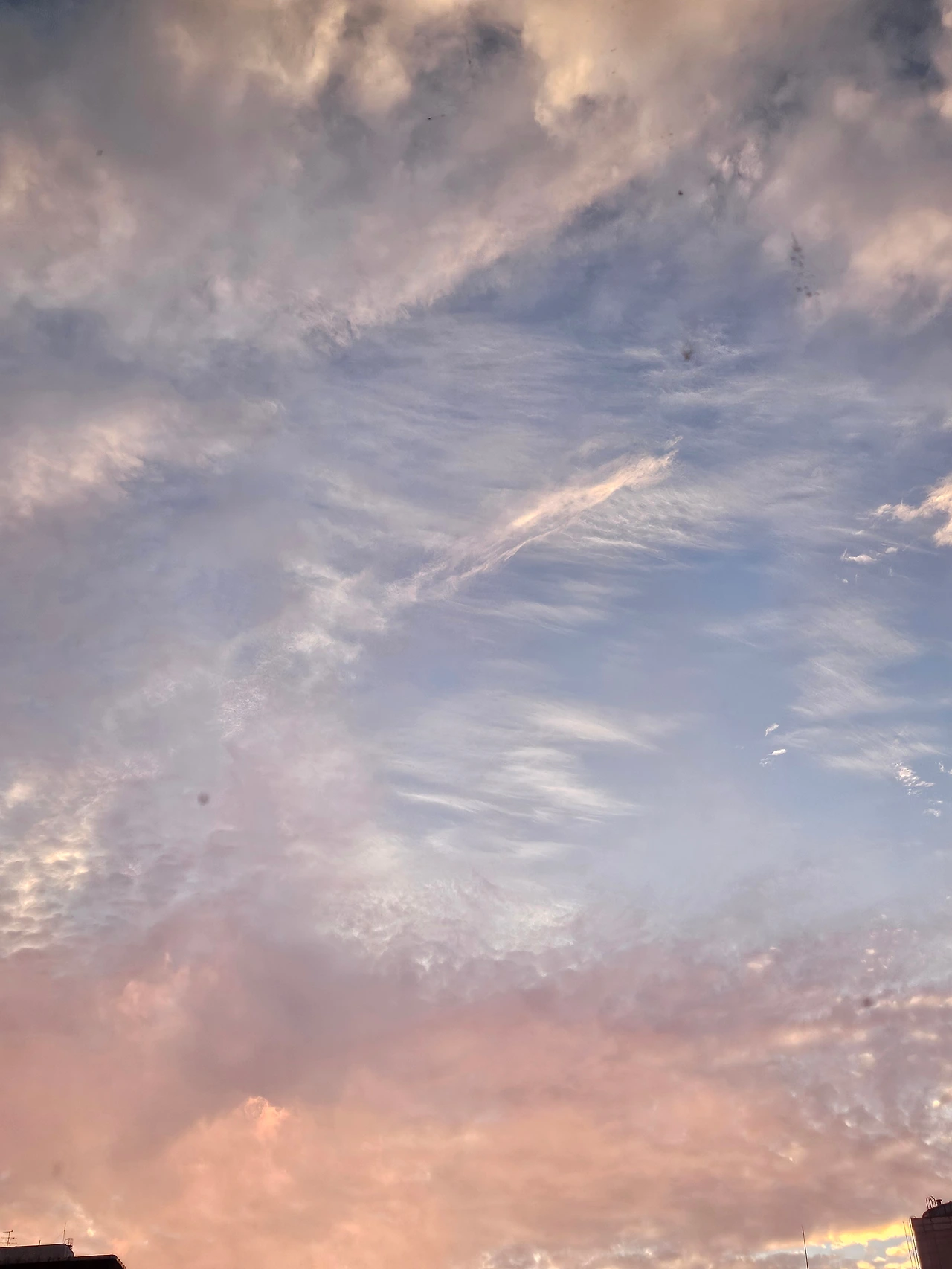 석양이 지는 왼쪽은 더 파스텔톤이다. 만지면 부드러울 것 같은 착각을 불러일으킨다. 왼쪽 사진이 오른쪽 사진 속 구름을 확대한 것이다.