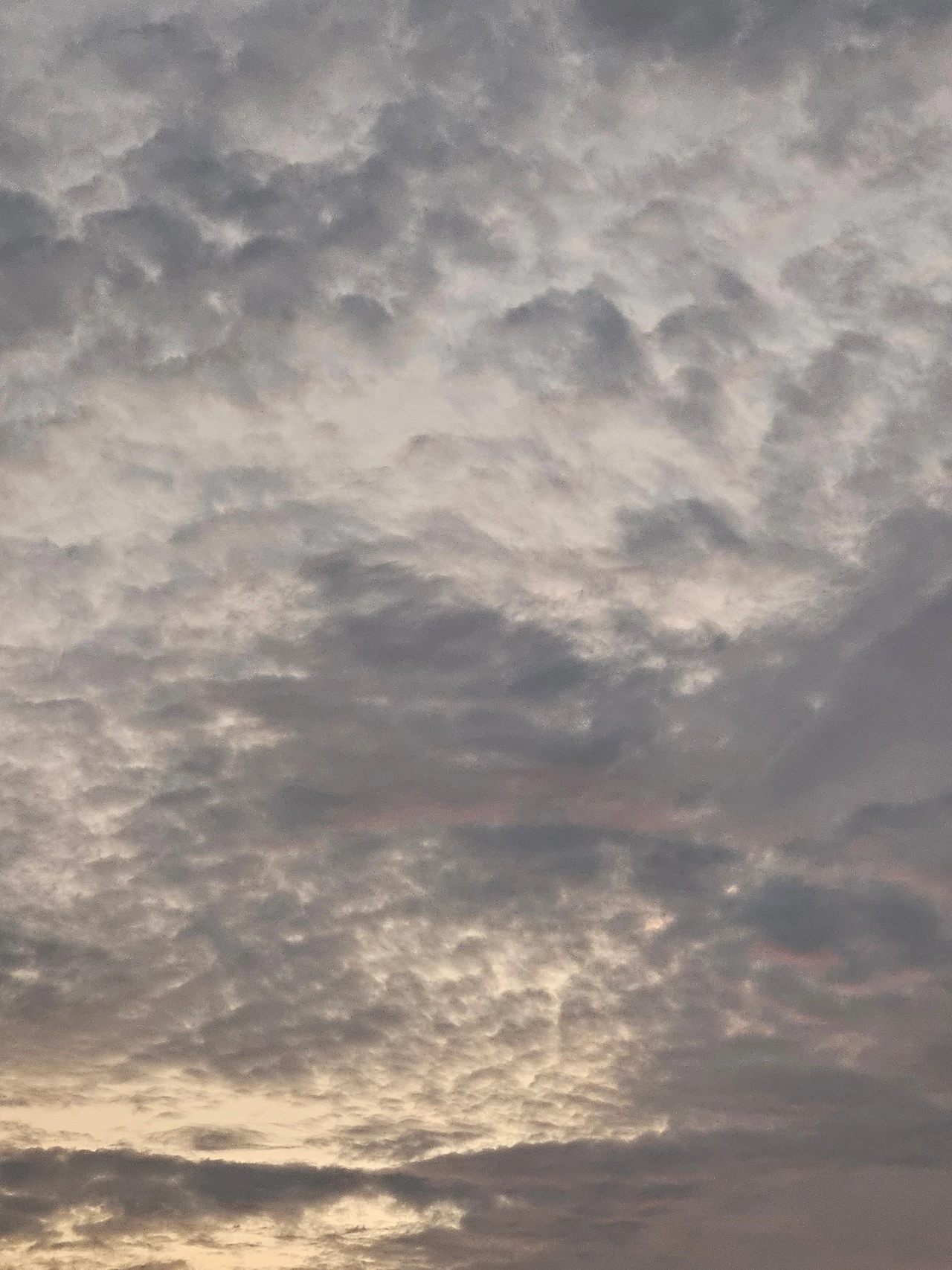 오늘 아침 하늘은 컵 안에 든 우유가 흔들리는 모습 같다. 유리컵에 마구 부딪히며 흔들리는. 해질 무렵, 이미 노을이 번지기 시작한 하늘과 대조된다. 노을빛이 미치지 못한 하늘. 구름은 눈 덩어리 같이 보인다.